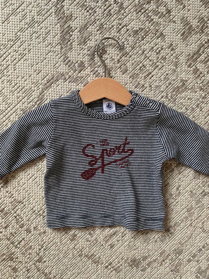 tee shirt à manches longue rayé Petit Bateau deux boutons pression sur les épaules taille 3 mois : 60 cm