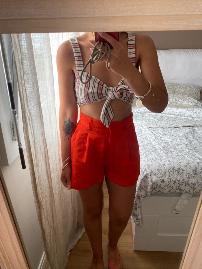 Top court à rayures Pimkie avec noeud sur le devant Taille S Porté qu’une seule fois
