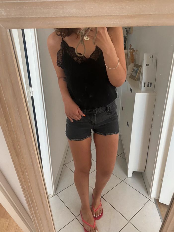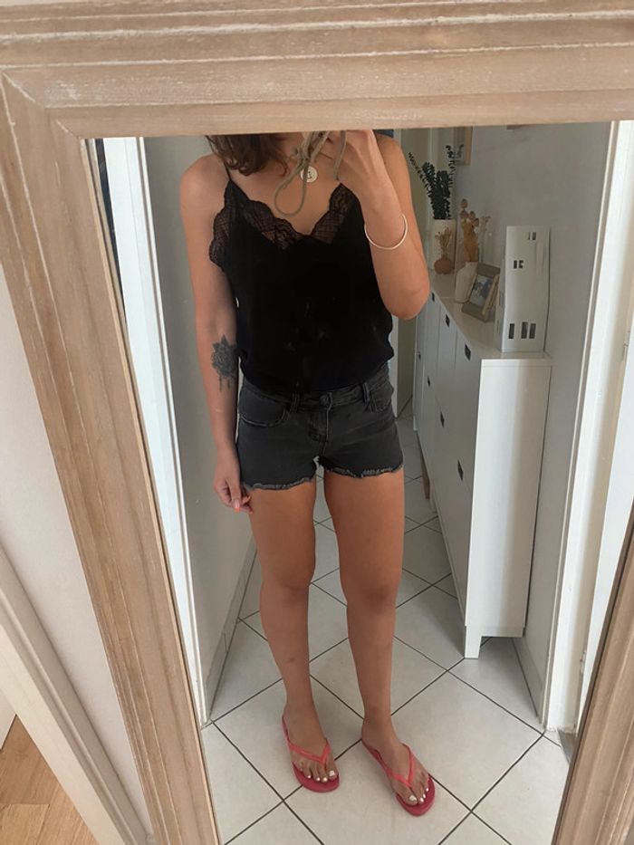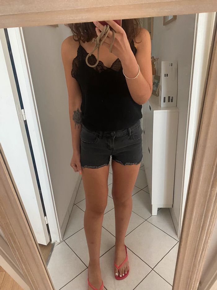 short en jean gris noir Pimkie taille 34 qui peut convenir à un petit 36