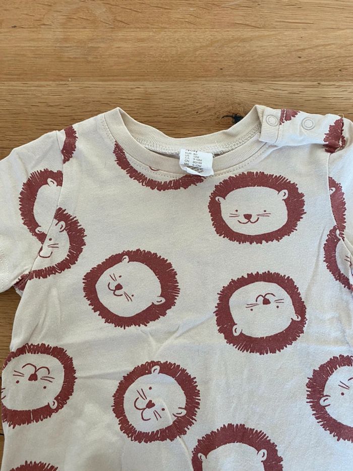 Tee shirt h&m a manches courtes avec motif « lion » Taille 9/12 mois : 80 cm