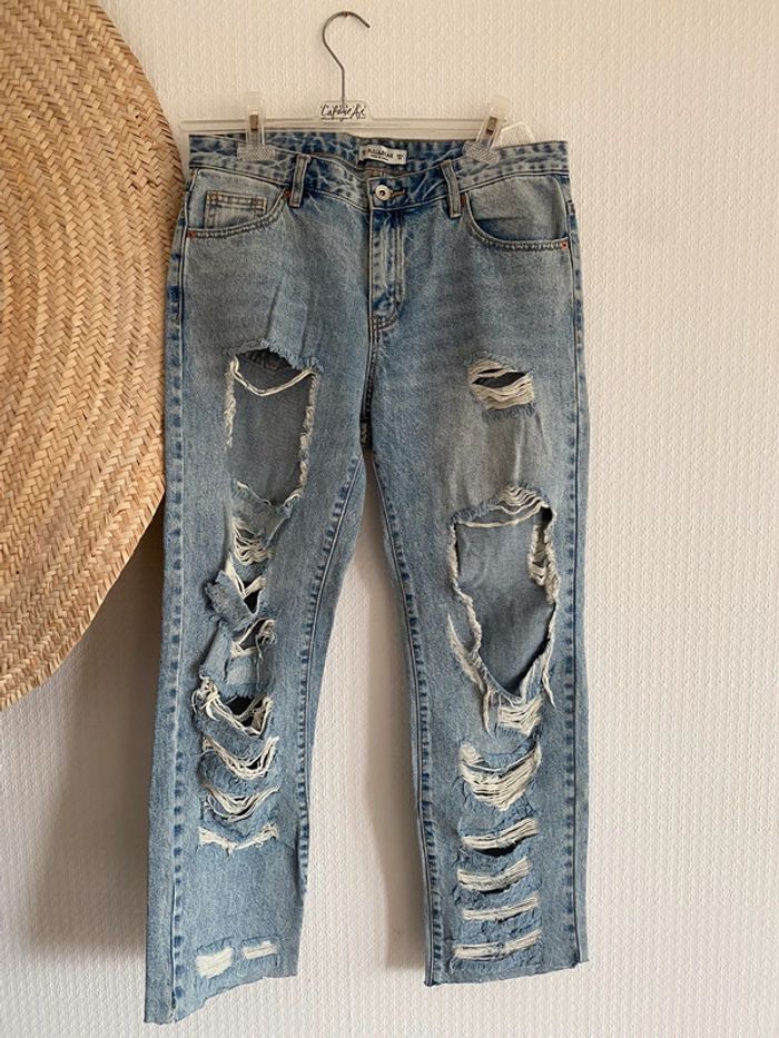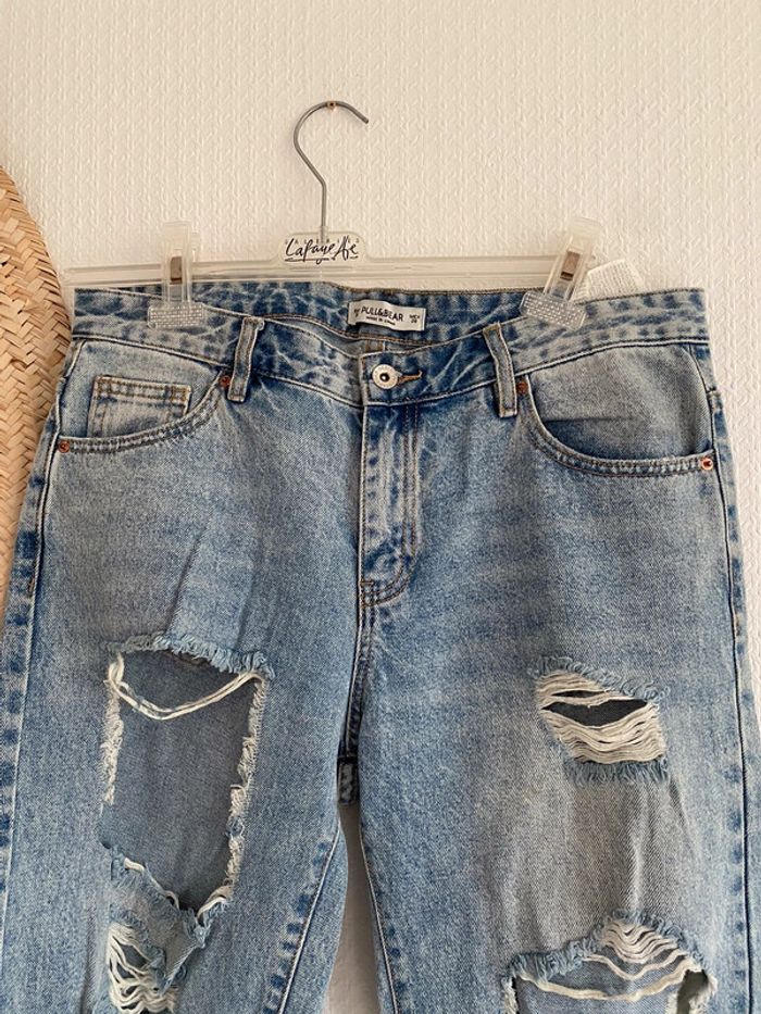 Jean destroy Pull and Bear Trous d’origine Taille 36 mais très loose donc convient à une taille 38 #jeandéchiré #jeantroués