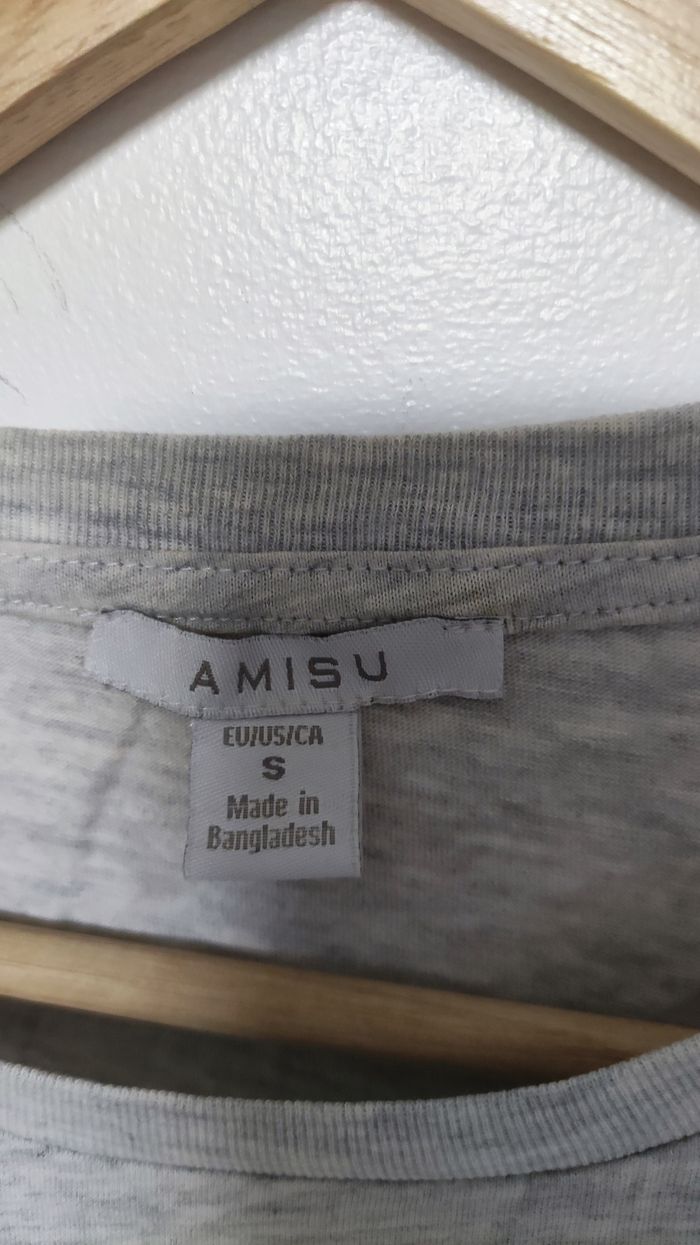 Tee-shirt manches courtes Taille 36 Gris uni Marque Amisu Tâche sur l'article, idéal teinture textile noir. Matière coton, viscose Veuillez consulter mes autres articles, je fais un grand Tri