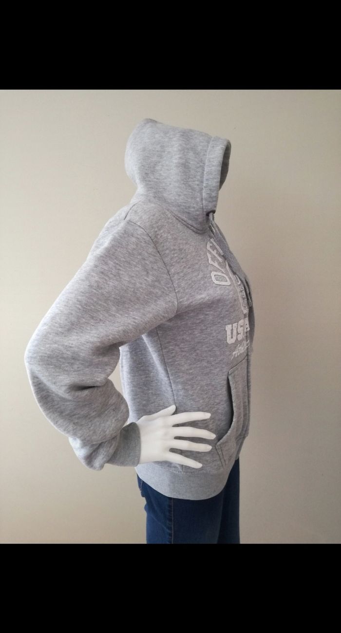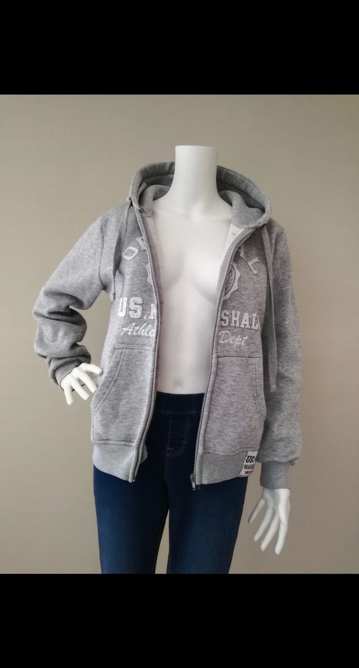 Je vends un sweat à capuche de la marque Marshall. Taille 36. Coloris gris clair imprimé blanc Fermeture par zip Capuche ajustable par cordon gris 2 poches devant Porté mais très bon état.