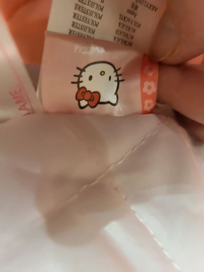 Bonnet étanche #Hellokitty rose taille 50, fourré avec pression pour rester bien attaché