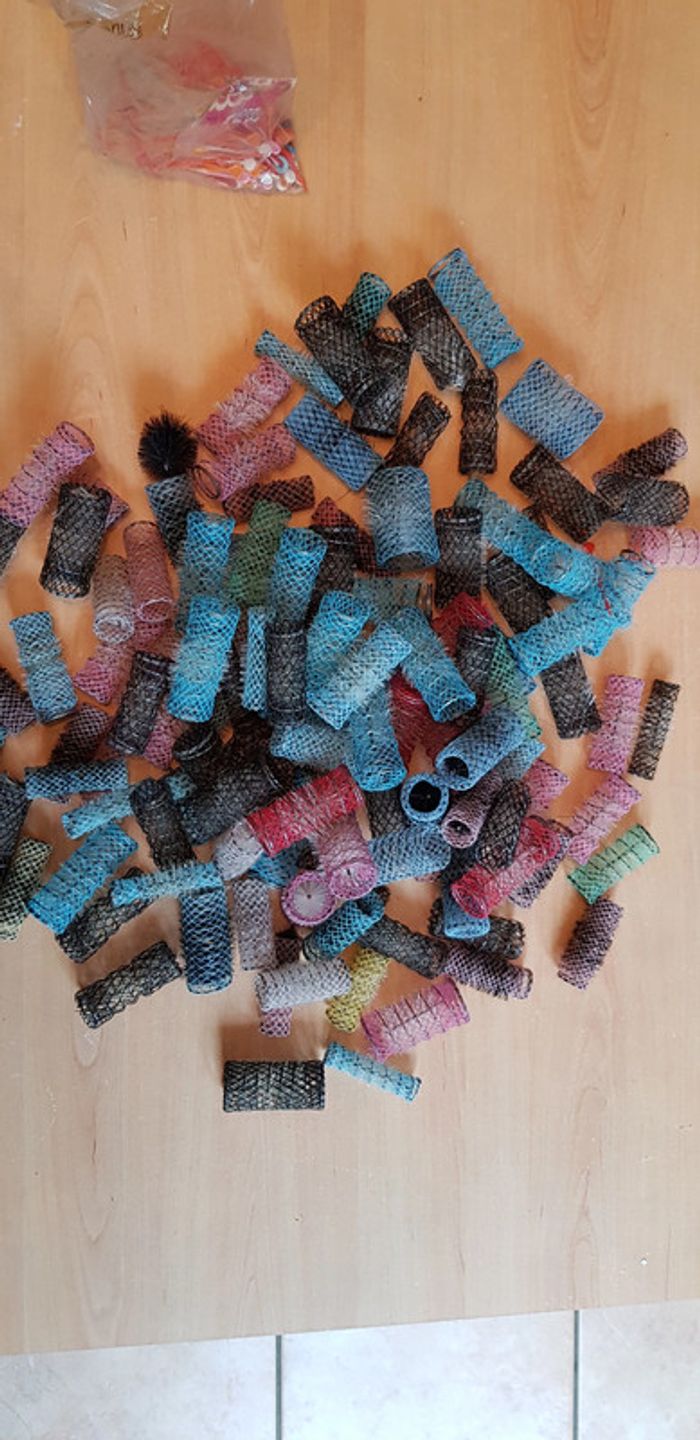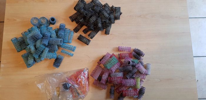 Lot de bigoudis divers tailles et couleurs avec attaches...