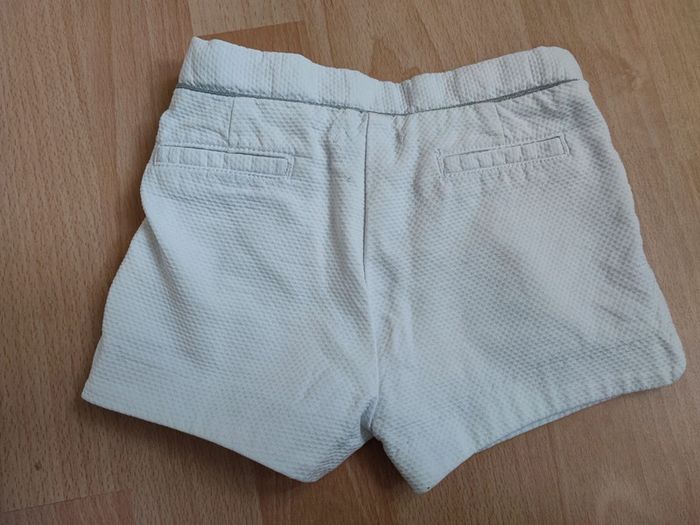 Short Okaïdi 12 mois. Blanc, effet texturé, liseré argenté. Beaucoup d'autres vêtements fille à vendre du 6 mois au 2 ans. #nane5986_12moisfille