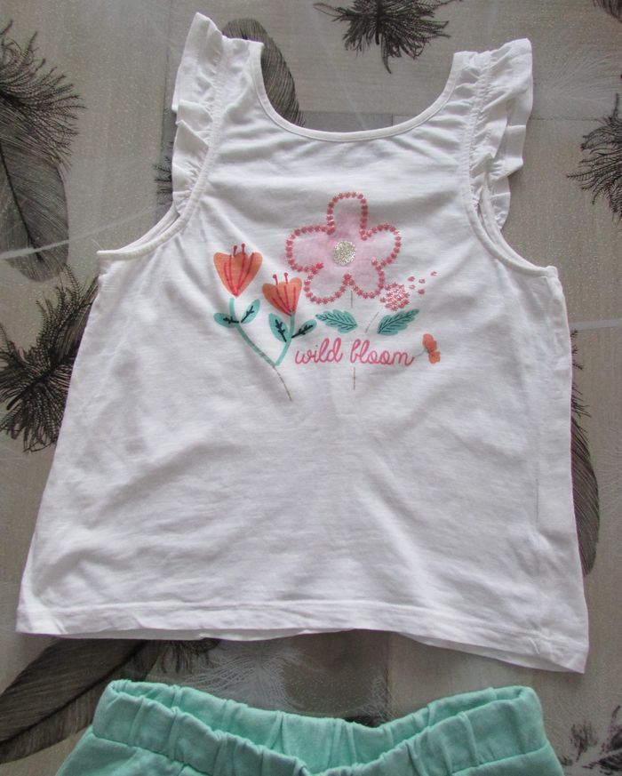 Ensemble 2 pièces de chez Orchestra, composé d'un short à taille élastiquée et d'un débardeur. Etat neuf, très peu porté. Taille: 10 ans - d'autres vêtements ici #ysatis13fille10ans N'hésitez pas à faire un lot pour profiter des remises activées #ensemble #orchestra #fille #wild #bloom #10ans #blanc #vert