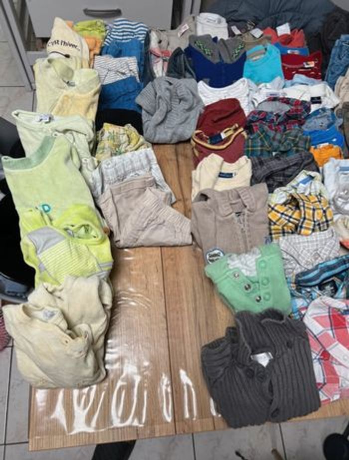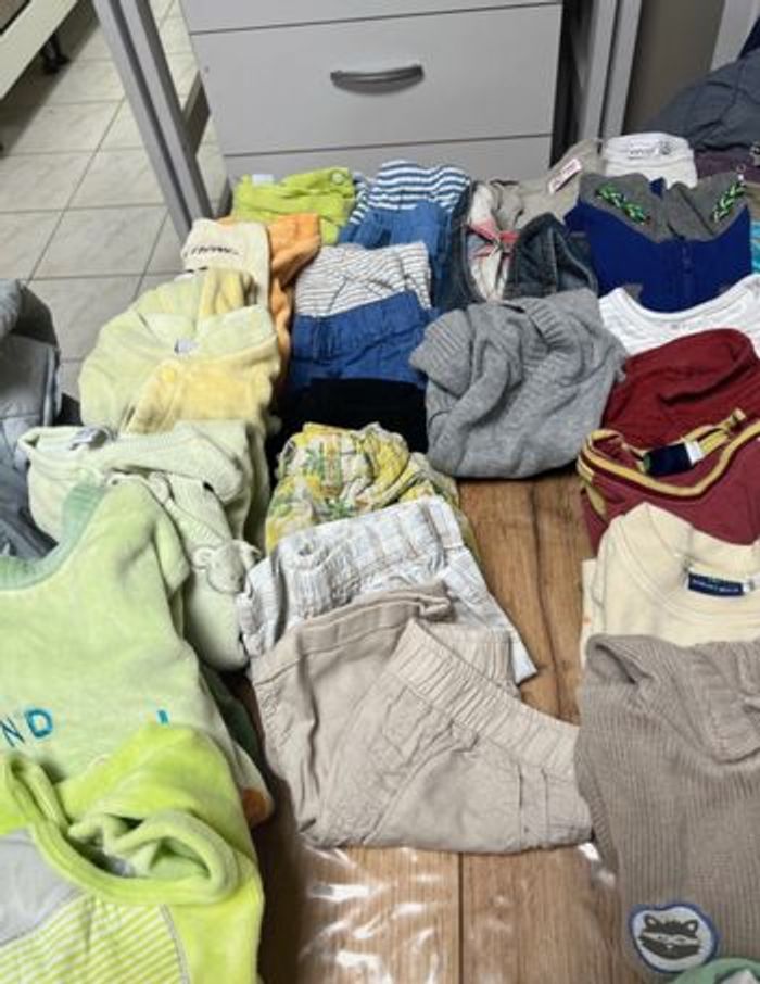 Vend vêtement garçon 6 mois 76 pièces au total 7 pyjama Huit. Shorts. Trois. Pulls sans manches. Neuf. Pulls 13 T-shirt. Long manches. 11. T-shirt courte manches. 14 Pantalon 11. Combinaisons salopettes. N'hésitez pas à visiter mon profil, d'autres annonces sont disponibles Réf 94