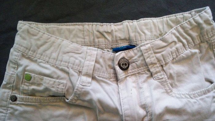 Bernuda / short en toile blanc casse / beige T 6 / 7 ans de marque OVS taille elastique reglable bouton poches cotes et a l'arriere attention, petite trace sur le devant de la braguette vendu 2€ piece #T6ans_missteph37 #T7ans_missteph37