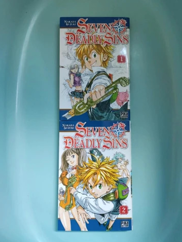 Lot de 2 livres de la série de Manga Seven Deadly Sins. Couverture en bon état. Voir photos. Intérieur parfait. #vulariMangas #vulariLivresEnfants Peut intéresser les lecteurs de Naruto, One Piece, l'attaque des Titans, Fairy Tail, dragon ball, dr stone, Fullmetal Alchemist, haikyu, boruto, my hero academia....