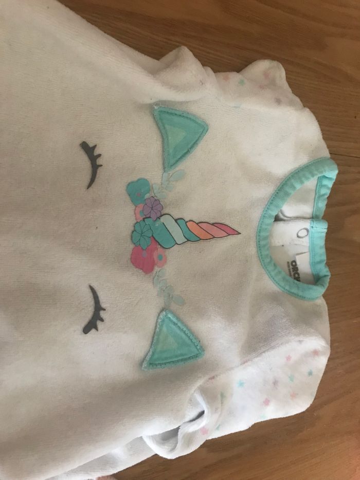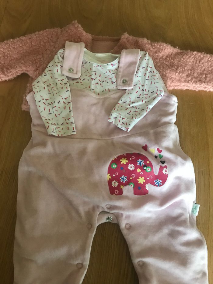 En tbe Comprend - un pyjama orchestra ´licorne ‘ 3 mois - un body absorba 3 mois - une salopette Fs baby taille 55 cm mais taille grand - un gilet en peau de mouton 3 mois