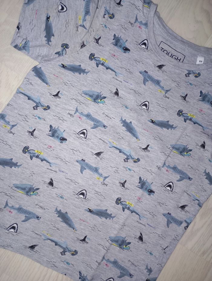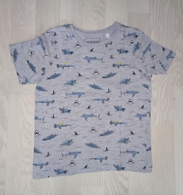 Tee-shirt gris chiné motif requins C&A T. 128 cm NEUF