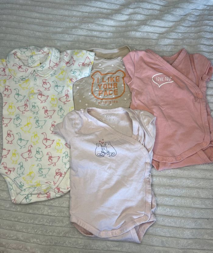 lot de body 1 mois très bon état marque : Bouchara,Tape a l’oeil,Primigino