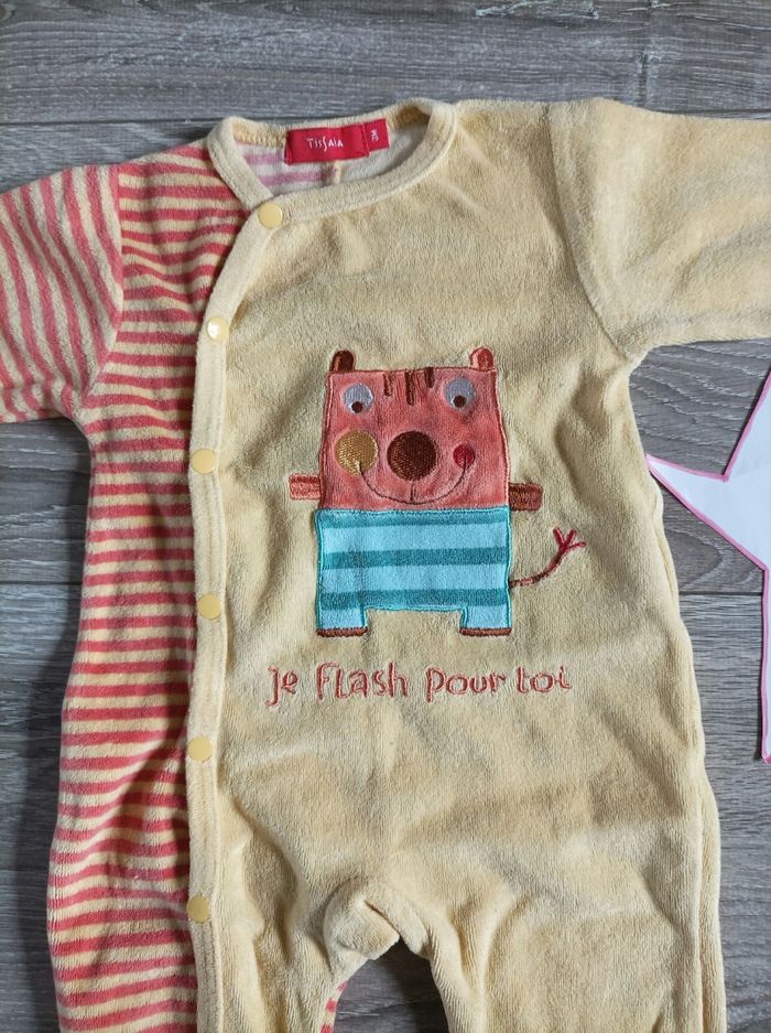 Pyjama velours 3 mois Je flash pour toi Ouverture intégrale devant pour faciliter l habillage de bébé