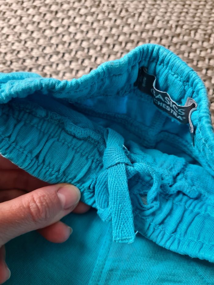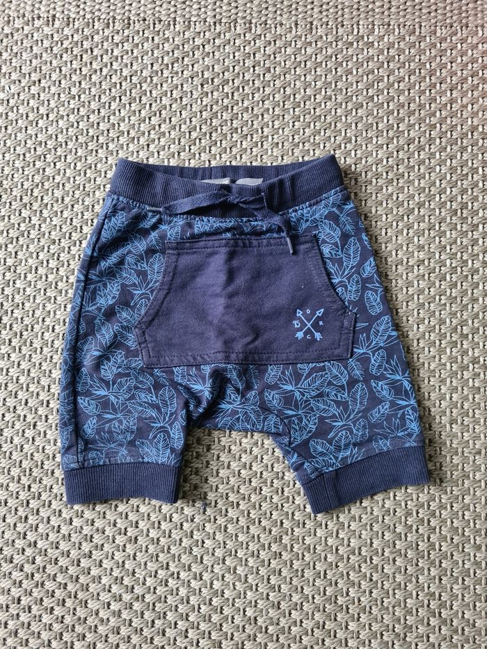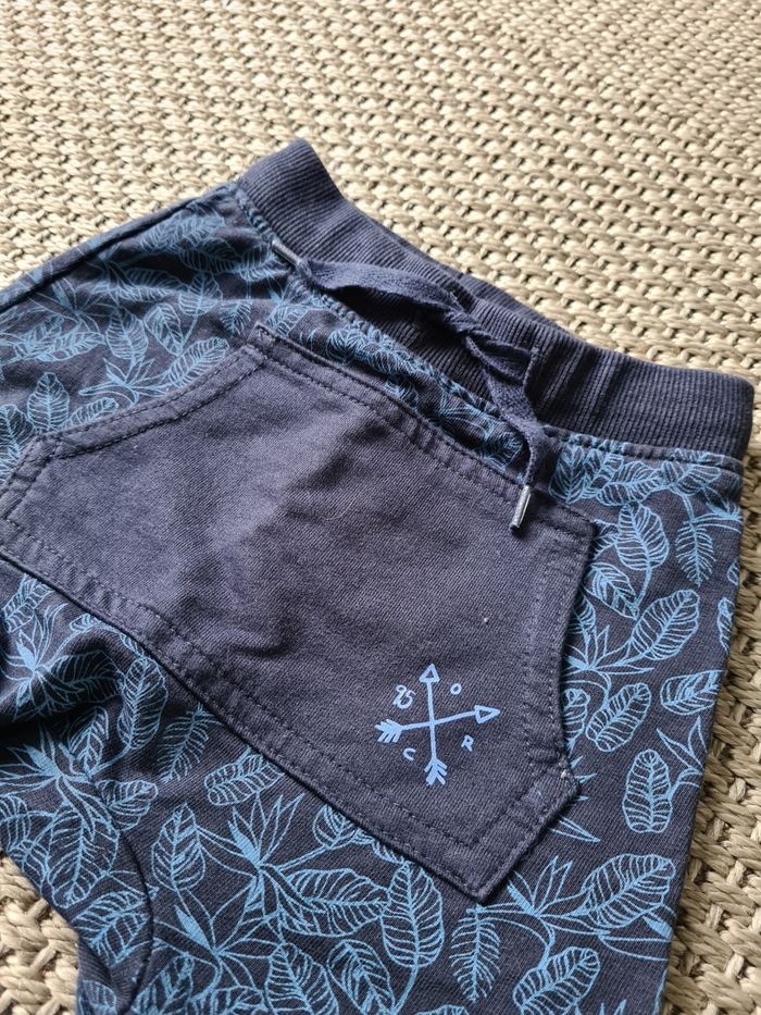 Lot de 2 shorts en excellent état. Couleur turquoise et bleu marine. Motif "flèches et feuilles" Taille 12 mois - marque orchestra.