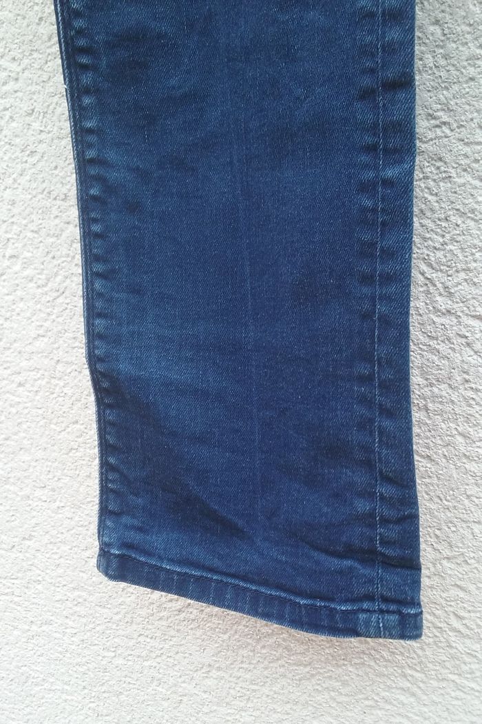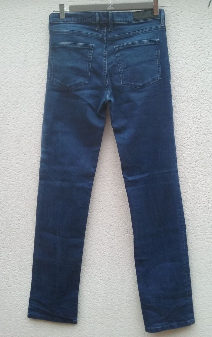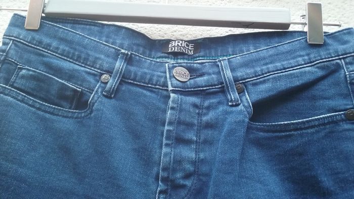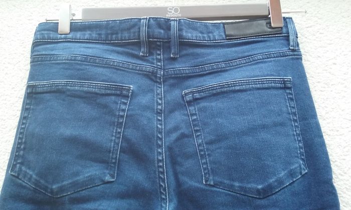 Composition 88% coton-10% polyester-2% élasthanne, fermeture boutonnée, T 38, attention coloris bleu marine!