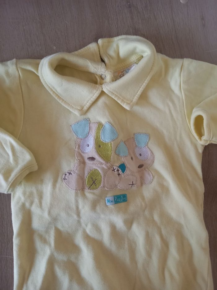 Pyjama mixte taille 6 mois Très bon état juste tâché un peu à l'arrière voir photo. Ça doit partir à la machine