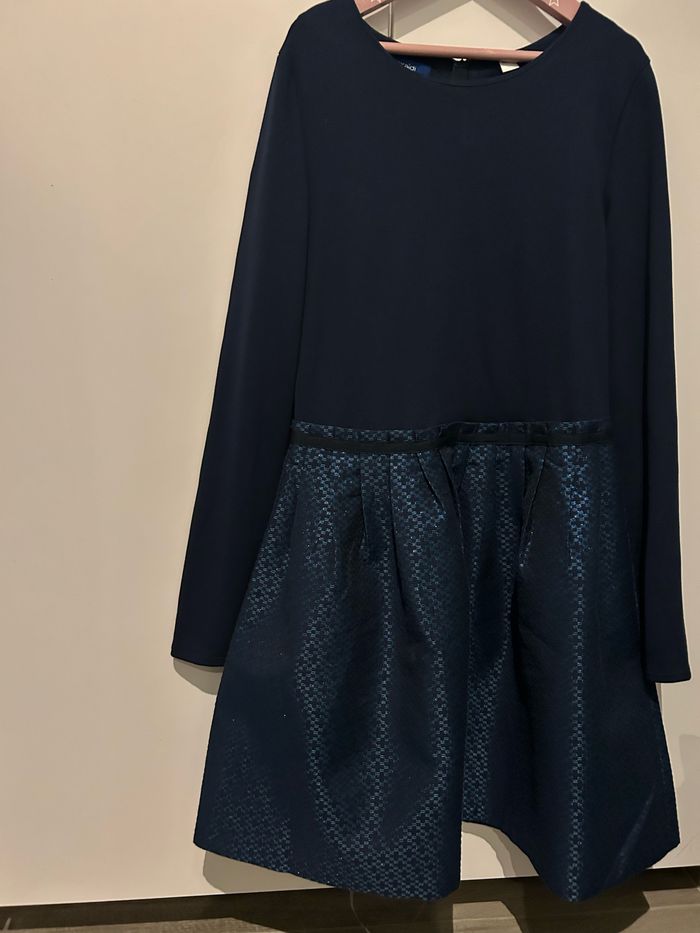 Vends robe OKAIDI. Bleu en haut et bleu irisé en bas. 12 ans. Excellent état, très peu portée.