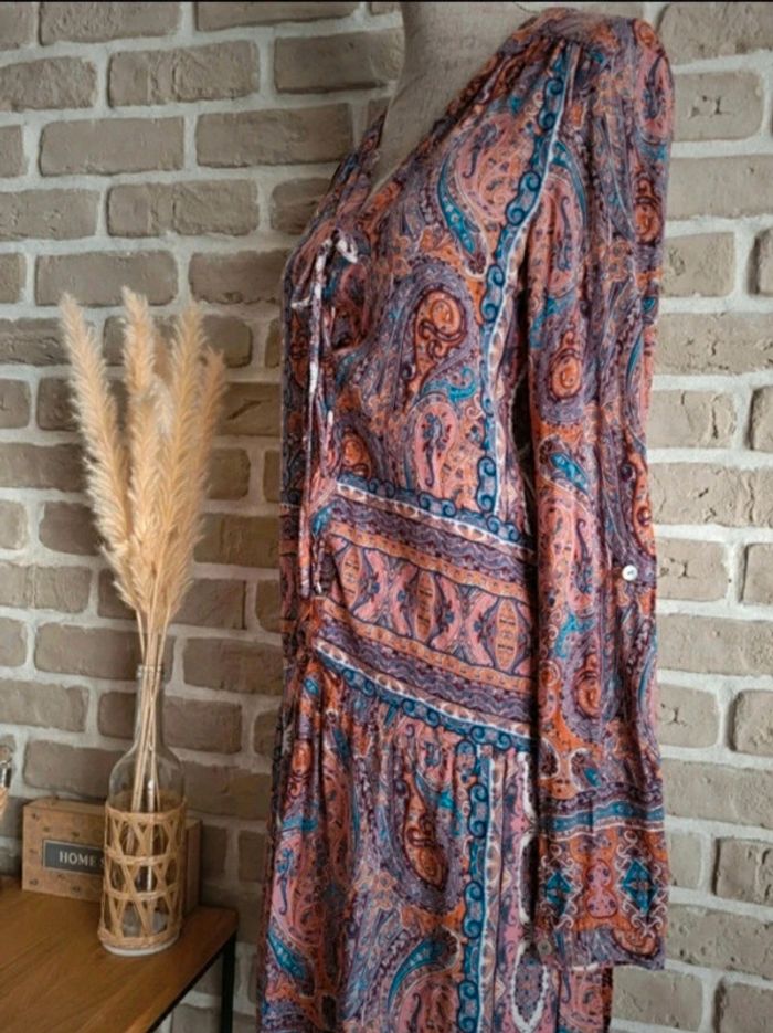 . Matière légère et fluide avec un imprimé foulard, style Isabelle Marant, dans les tons bleu rose violet et rehaussé de prune