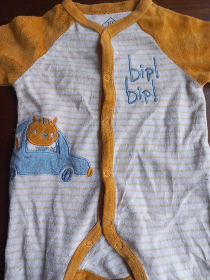 Pyjama en velour blanc et jaune, ouverture par pression sur le devant Tex 3mois Lot possible :-5% à partir 3 articles -15%pour 5 articles alors N'hésitez pas a consulter les autres articles en 3mois en cliquant ici : #fanny61119_garcon_3mois #3mois #3moisgarcon #pyjama #pyjamabébé #pyjama3mois #grenouillère #grenouillere3mois #tex #texbaby