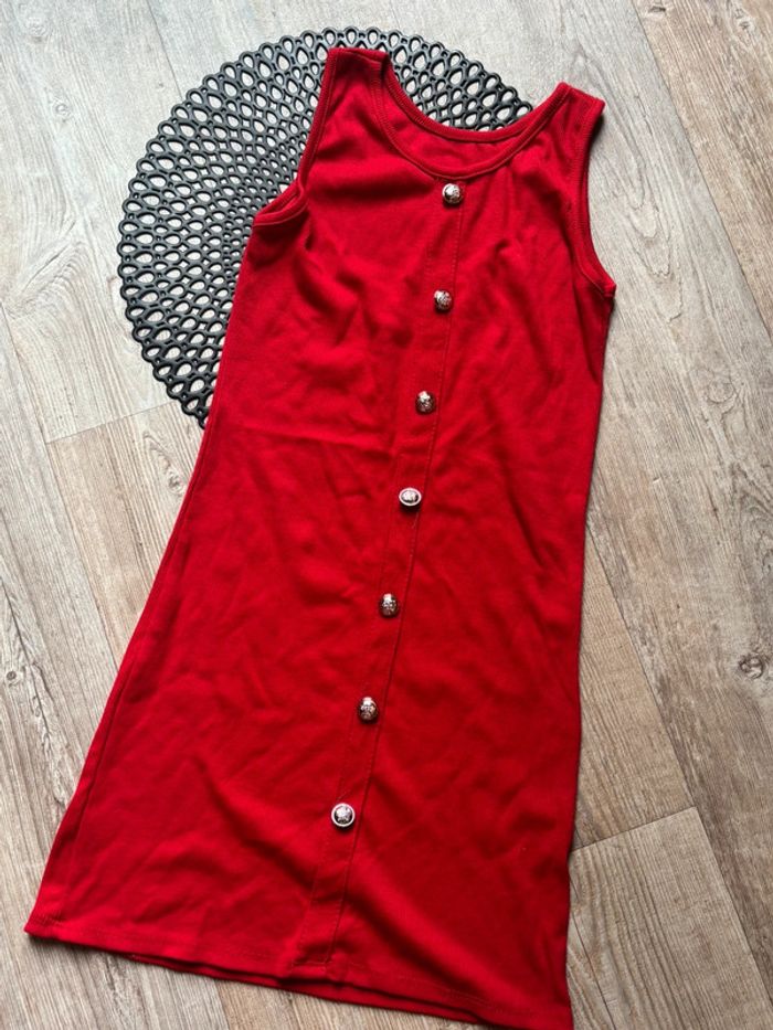 Robe sans manche côtelé rouge avec bouton doré Tapez sur #chachou991214ans pour voir les articles en vente de la même taille … Envoi rapide et soigné … Maison non fumeur et sans animaux … #robe #robefille #robecottele Clicorne