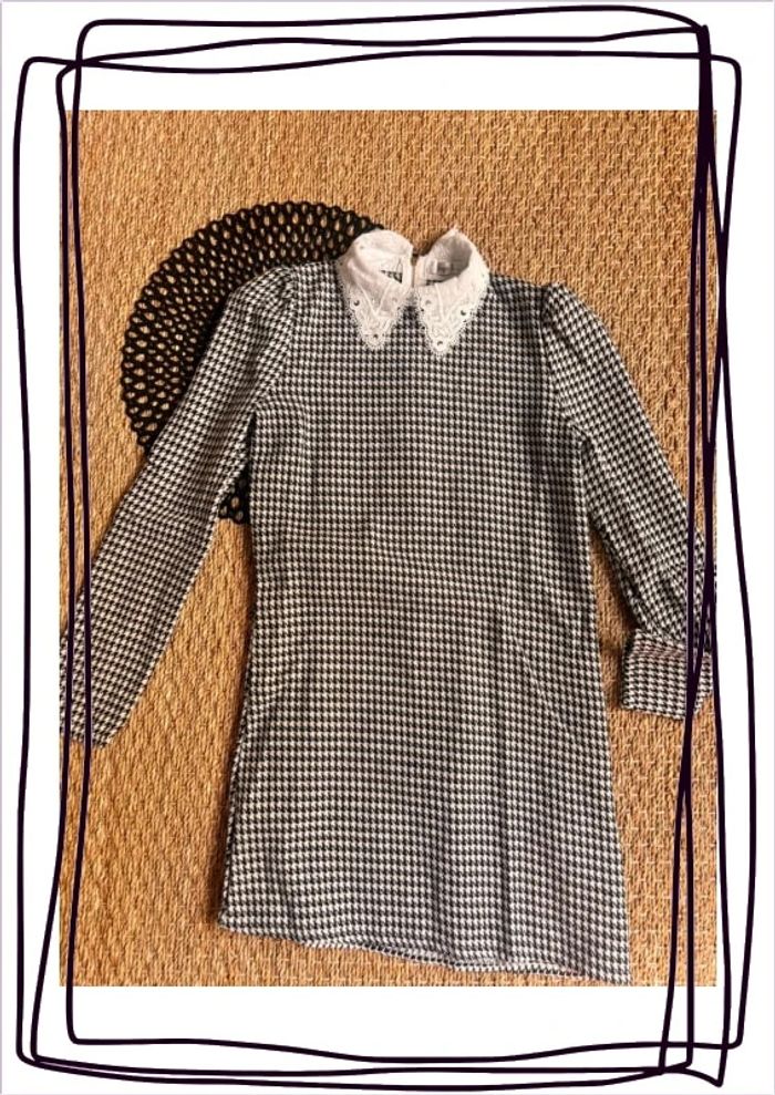 Robe carreaux pied de poule dentelle manche longues Tapez sur #chachou991214ans pour voir les articles en vente de la même taille … Envoi rapide et soigné … Maison non fumeur et sans animaux … #colclaudine #pieddepoule #robe #robefille C11
