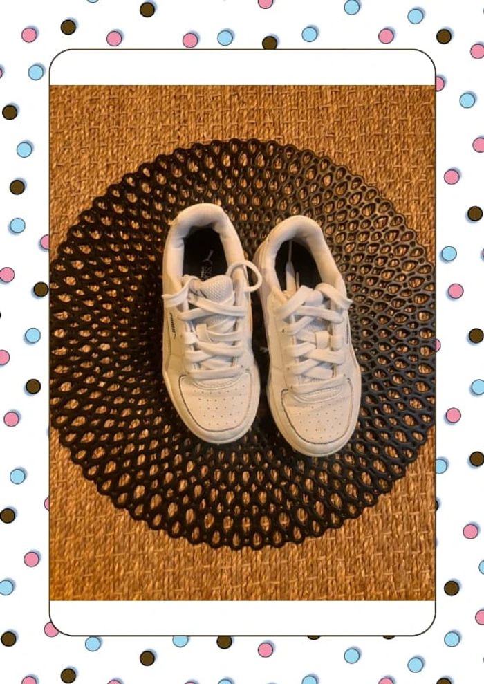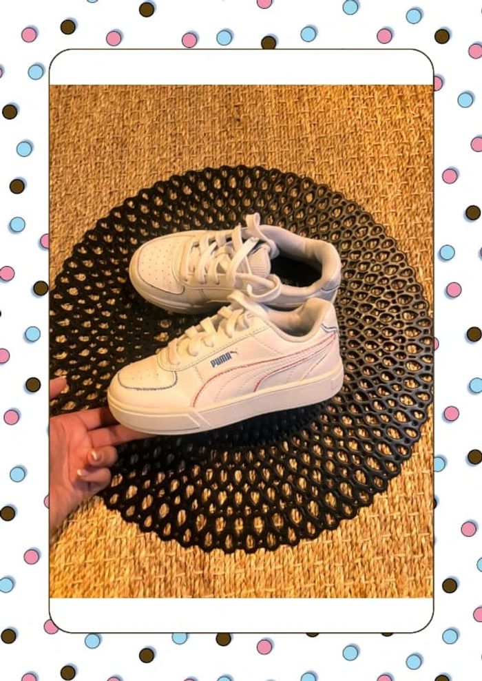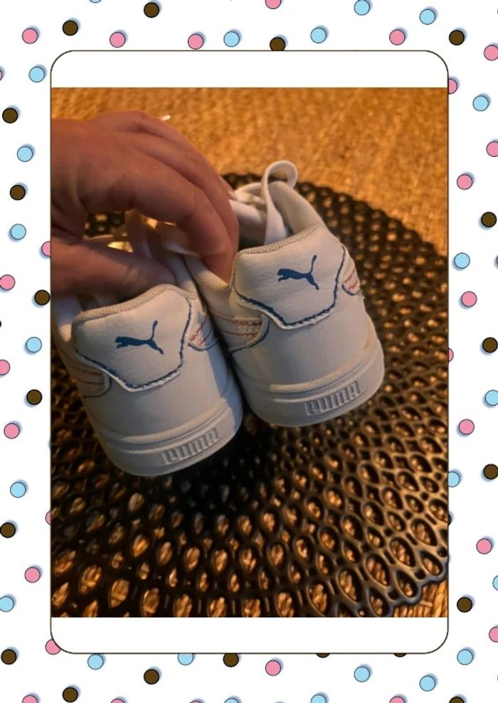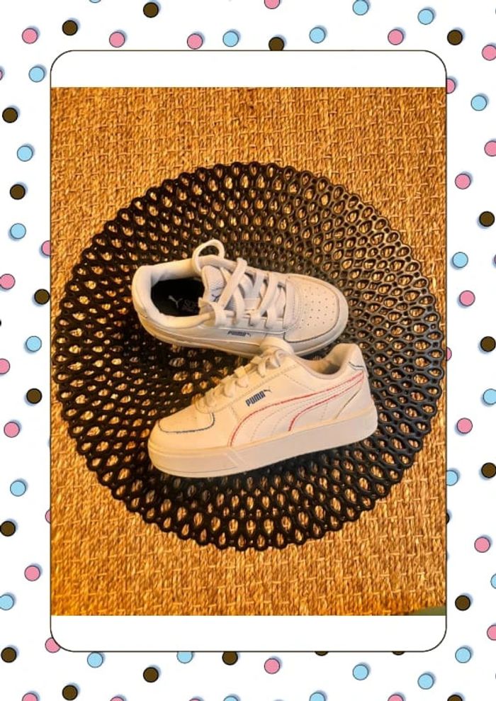 Puma blanche liseret bleu et rouge Tapez sur #chachou9912c30 pour voir les articles en vente de la même taille … Envoi rapide et soigné … Maison non fumeur et sans animaux … #puma #basketsblanche C12
