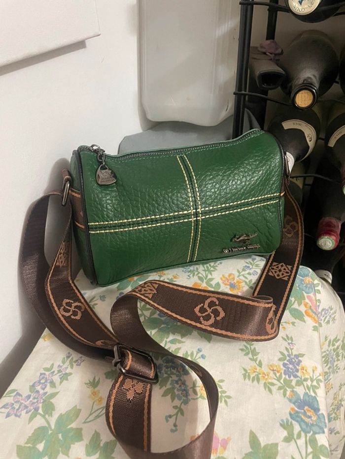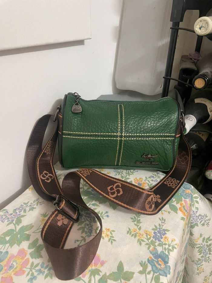 Sac Bandoulière Chic Brodé en cuir vert neuf - photo numéro 1