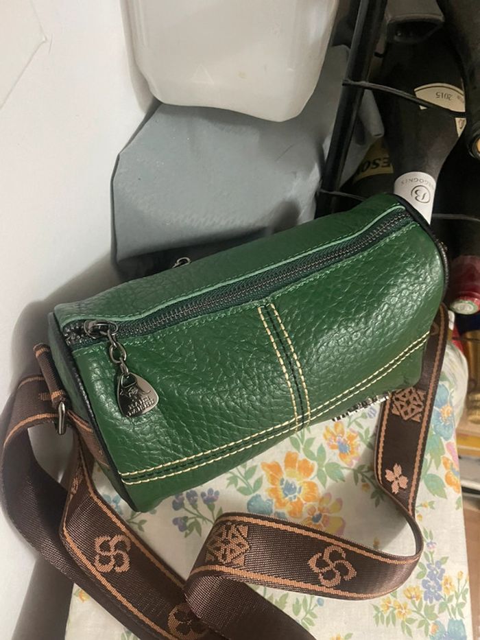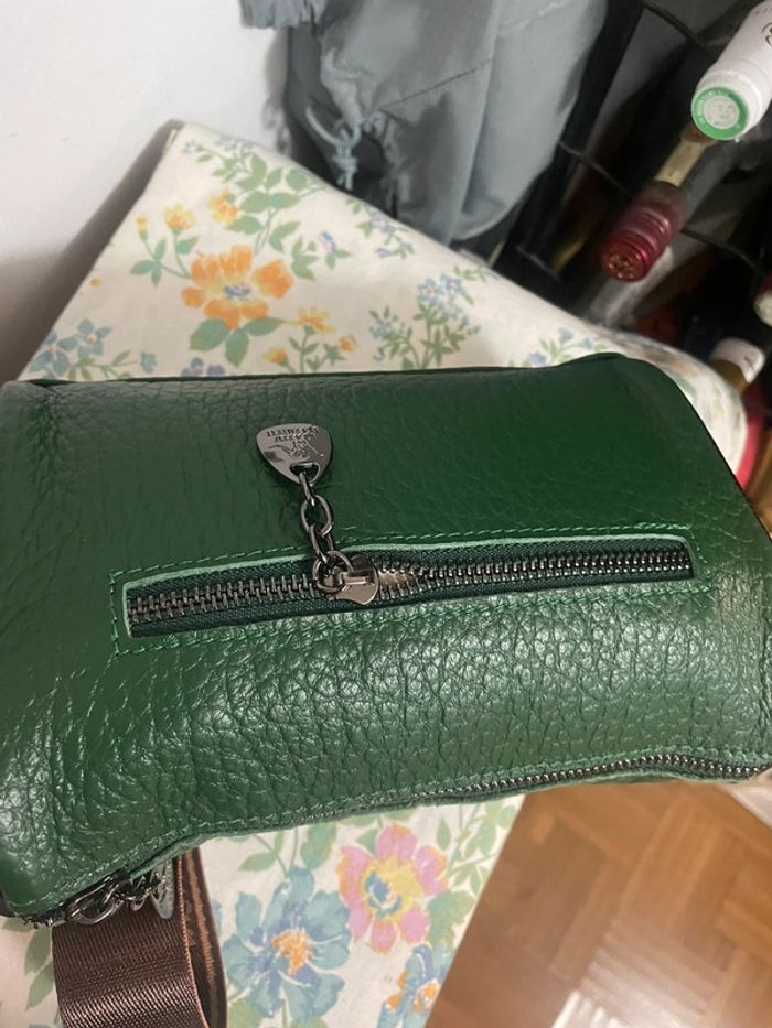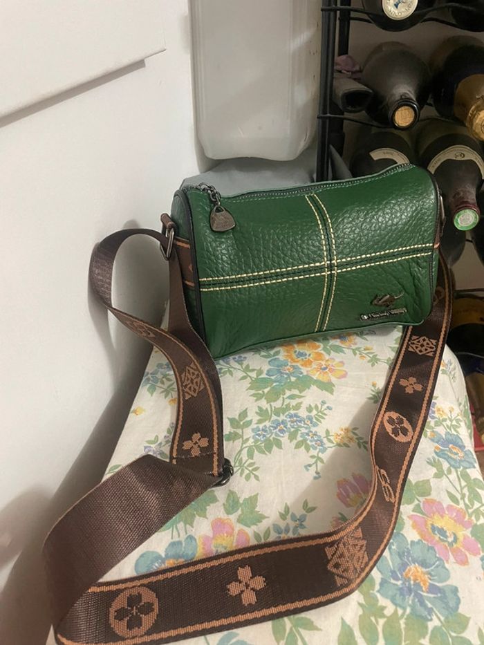Sac Bandoulière Chic Brodé en cuir vert neuf - photo numéro 3
