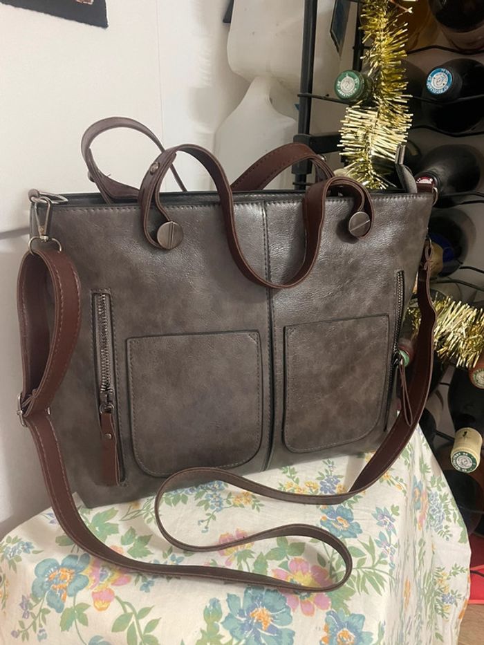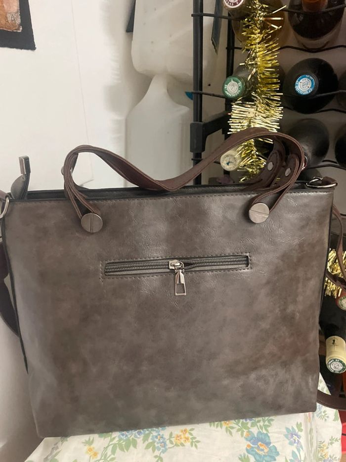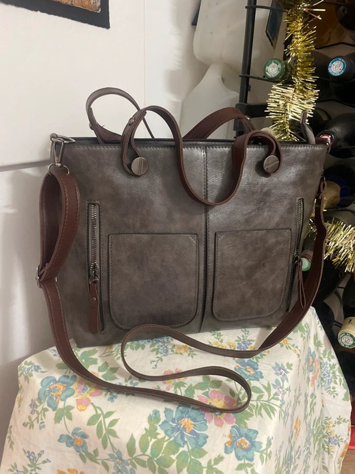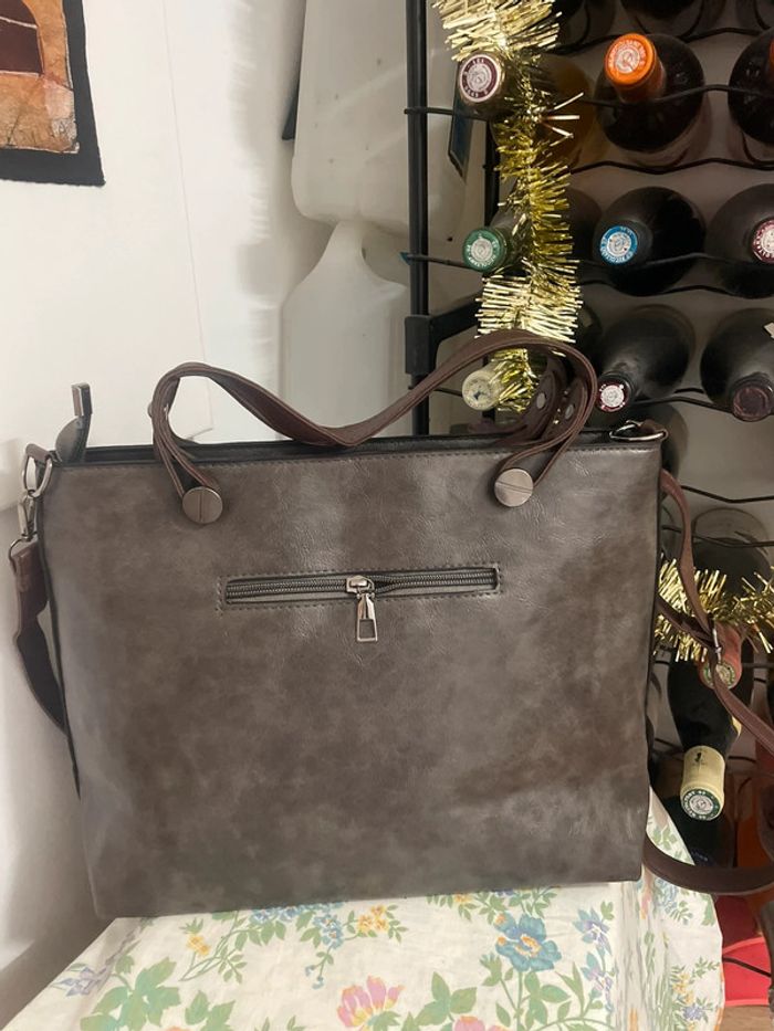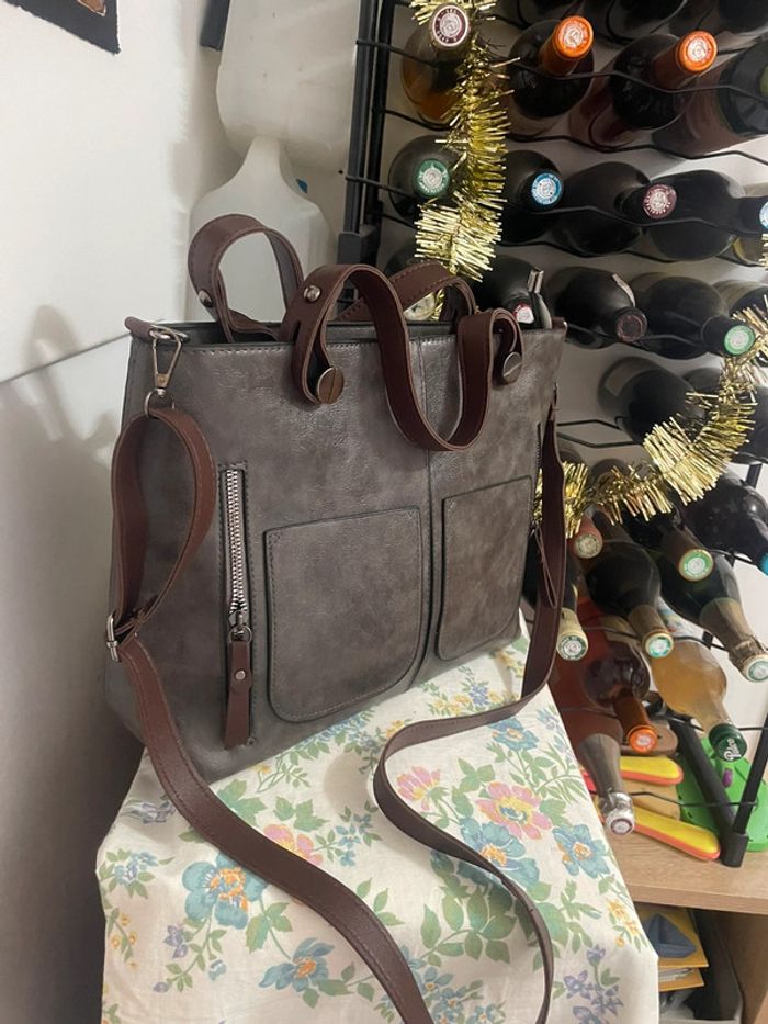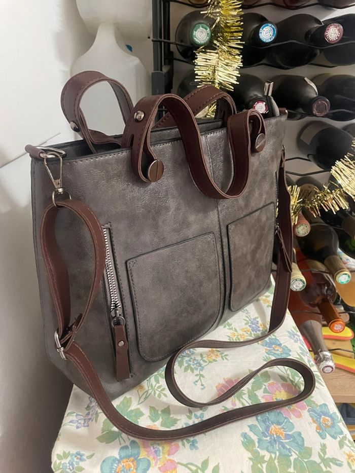 Joli Sac fourre-tout 👜 gris pour Femme. Sac Ajustable avec beaucoup de poches. - Matériau en PU avec Doublure en Polyester, L 31 H 26 111