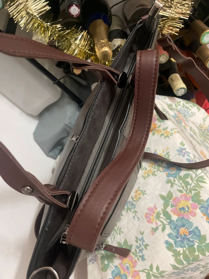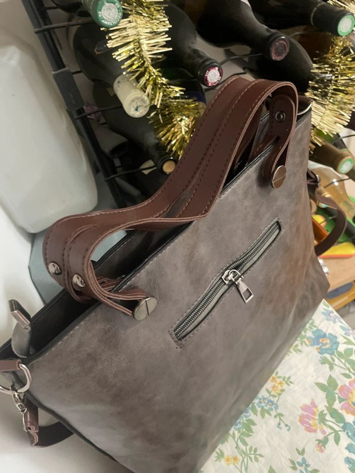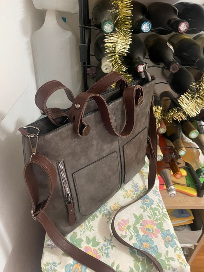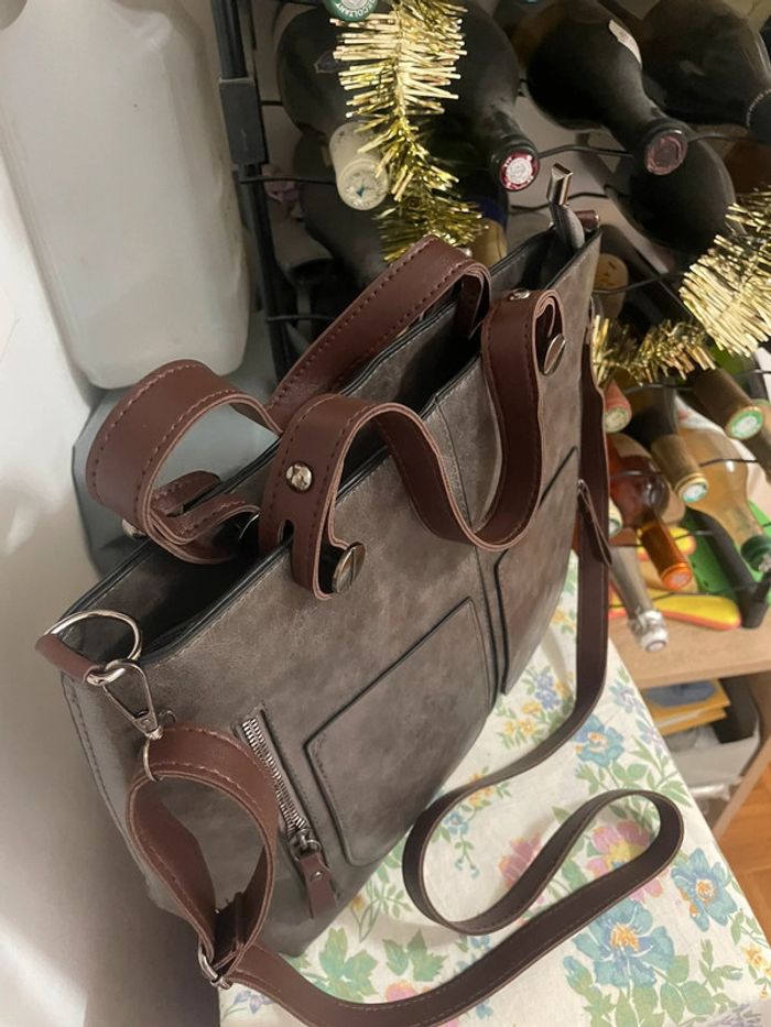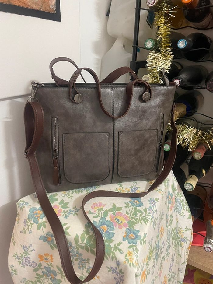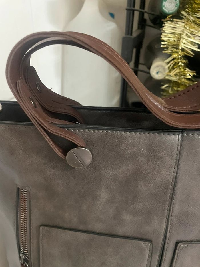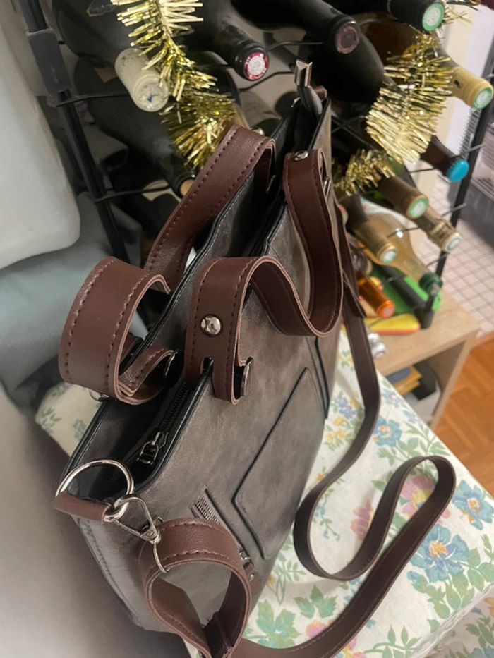 Joli Sac fourre-tout 👜 gris pour Femme. Sac Ajustable avec beaucoup de poches. - Matériau en PU avec Doublure en Polyester, L 31 H 26 111