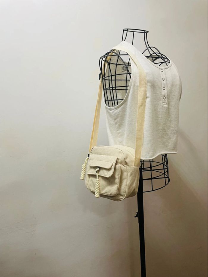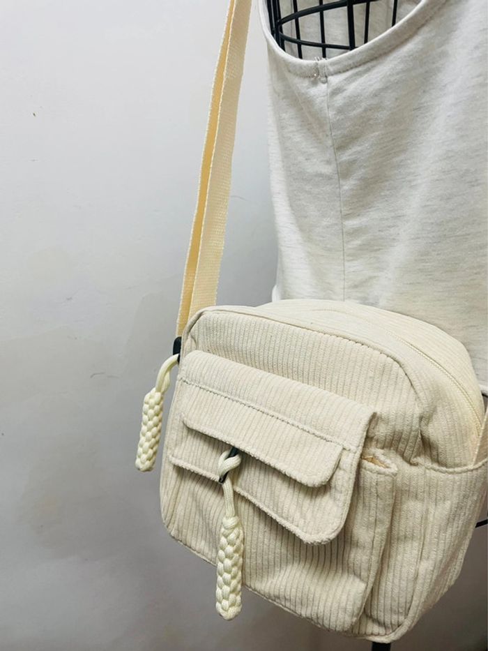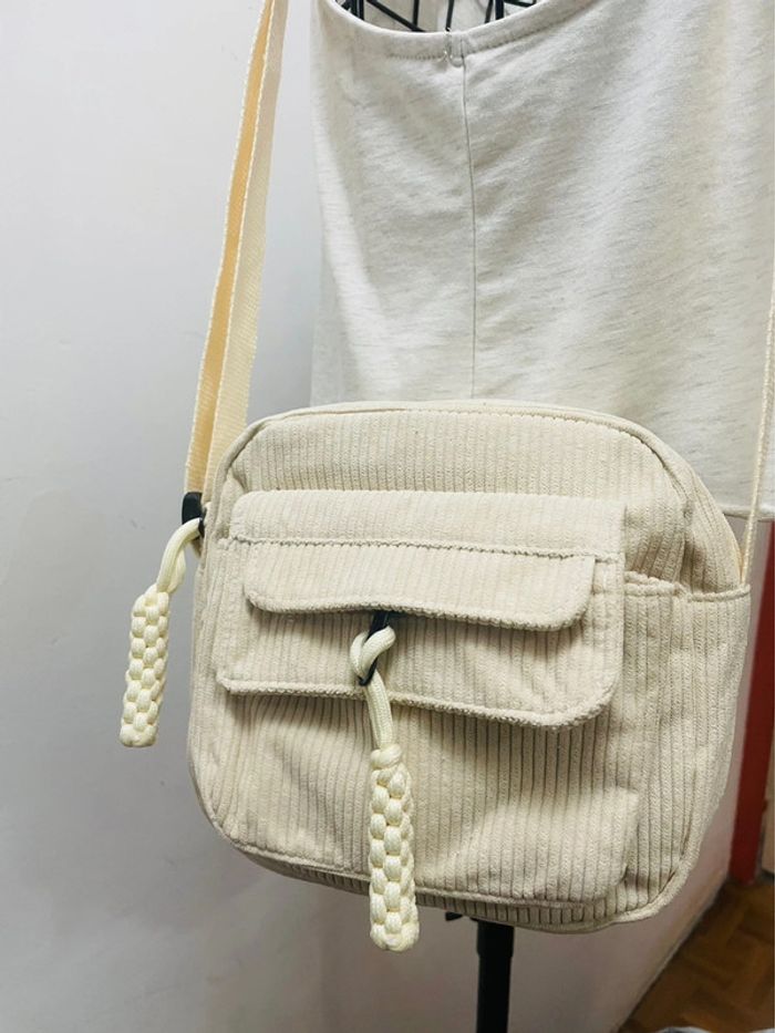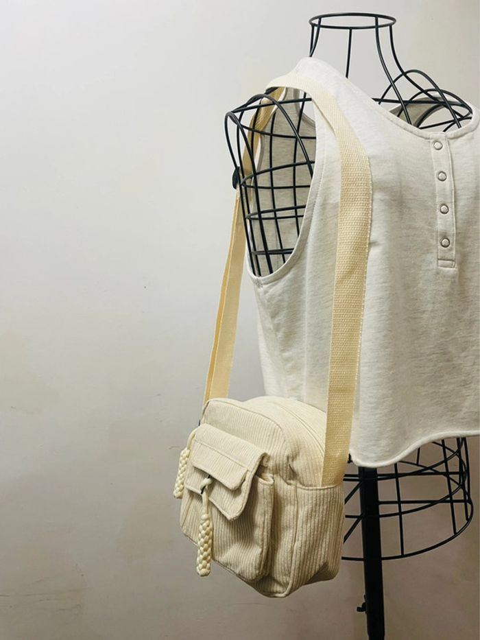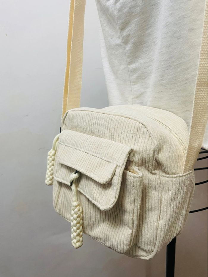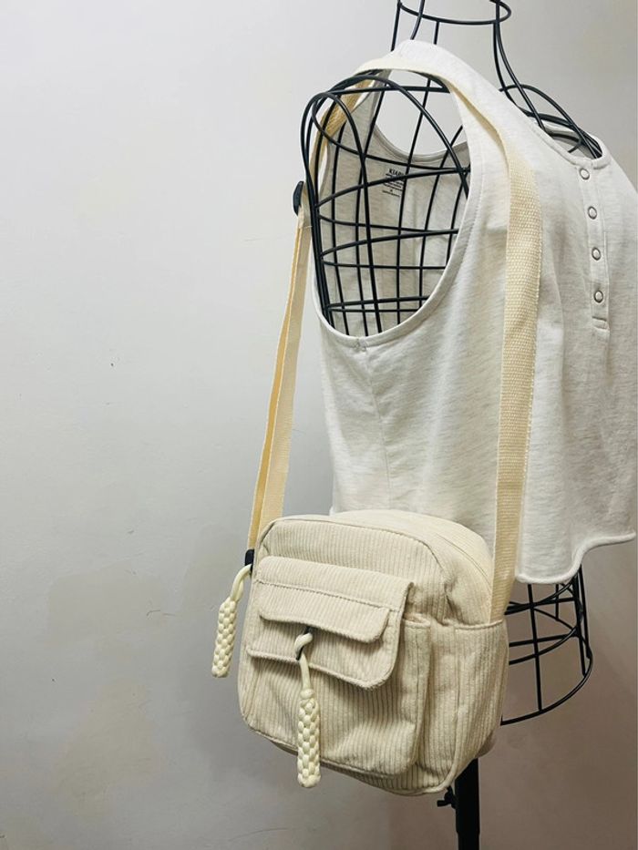 Sac Bandoulière en Velours Côtelé Chic pour Femme - Style Décontracté en Crème