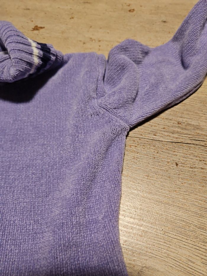 Pull tout doux à col roulé. Il n a pas été beaucoup mis mais attention, le tissu est abîmé en dessous du bras gauche, voir les 2 dernières photos, ca ne se voit pas quand il est porté Convient bien pour du 5 à 6 ans #deborahtock_5ans #deborahtock_6ans