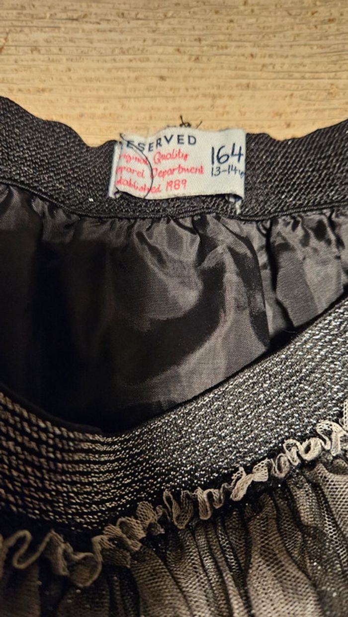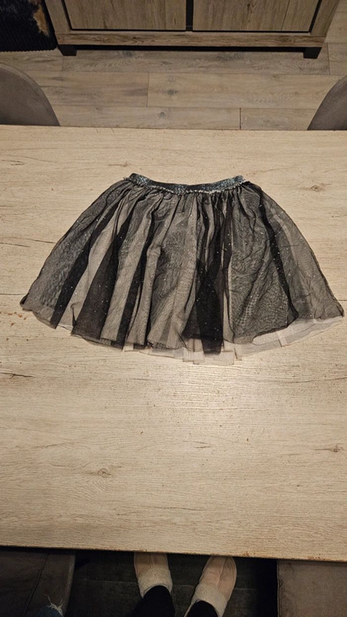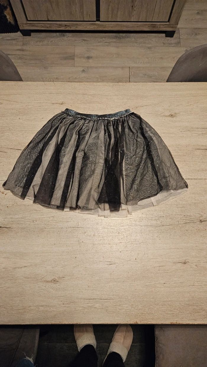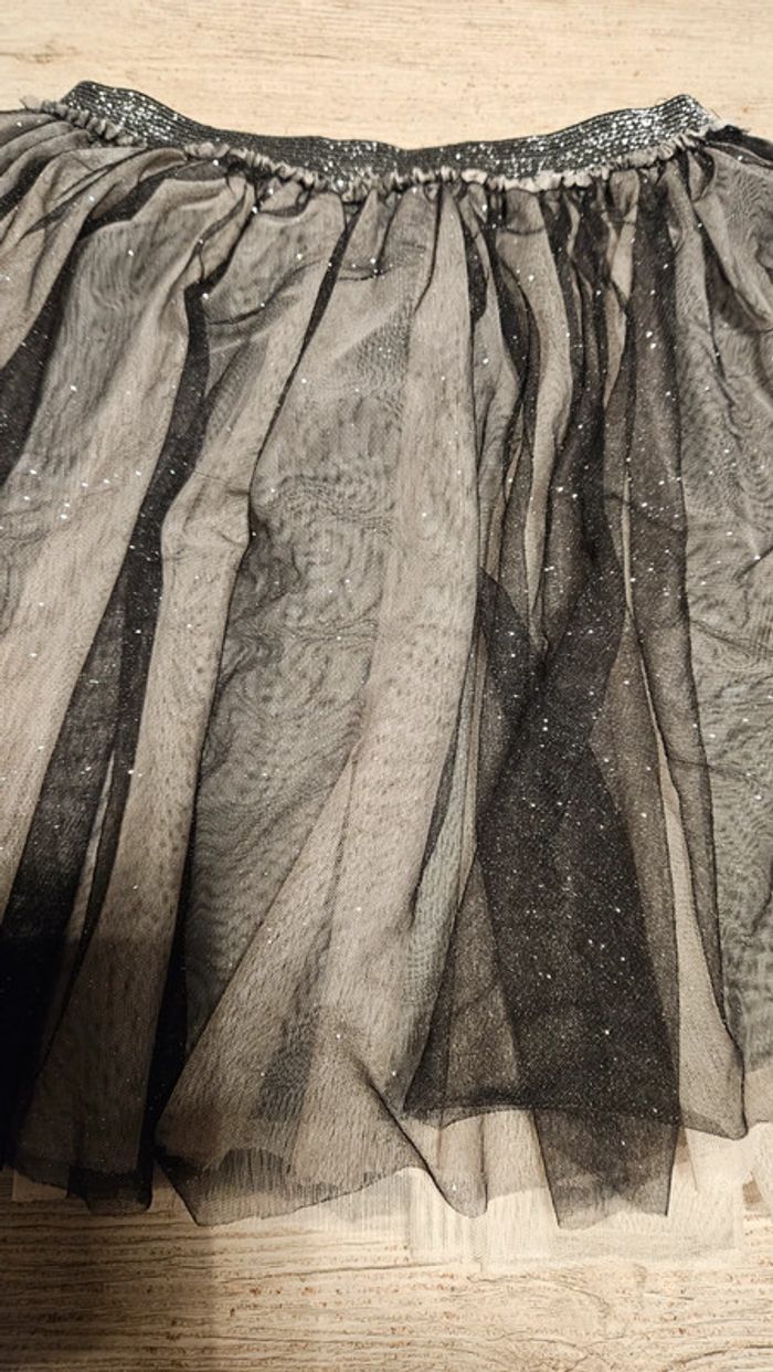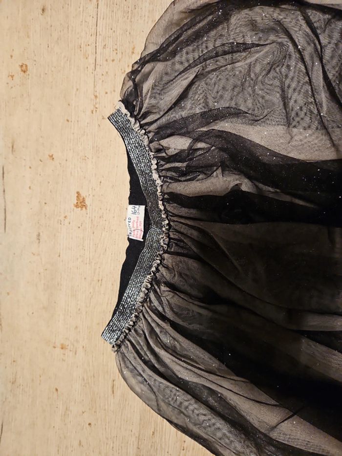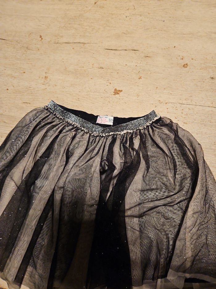 Jolie jupe avec plusieurs épaisseurs de tulles: 1 noir transparent à pailettes, 1 beige et 1 doublure en dessous. Elastique brillant à la taille. Jamais mise mais sans étiquette. Achetée il y a quelques semaines, mais changement d avis. Convient bien pour du 12 à 14 ans. Pas trop courte #deborahtock_13ans #deborahtock_14ans #deborahtock_fêtes