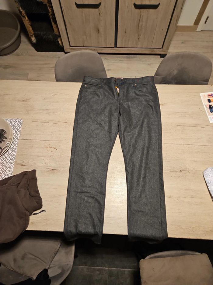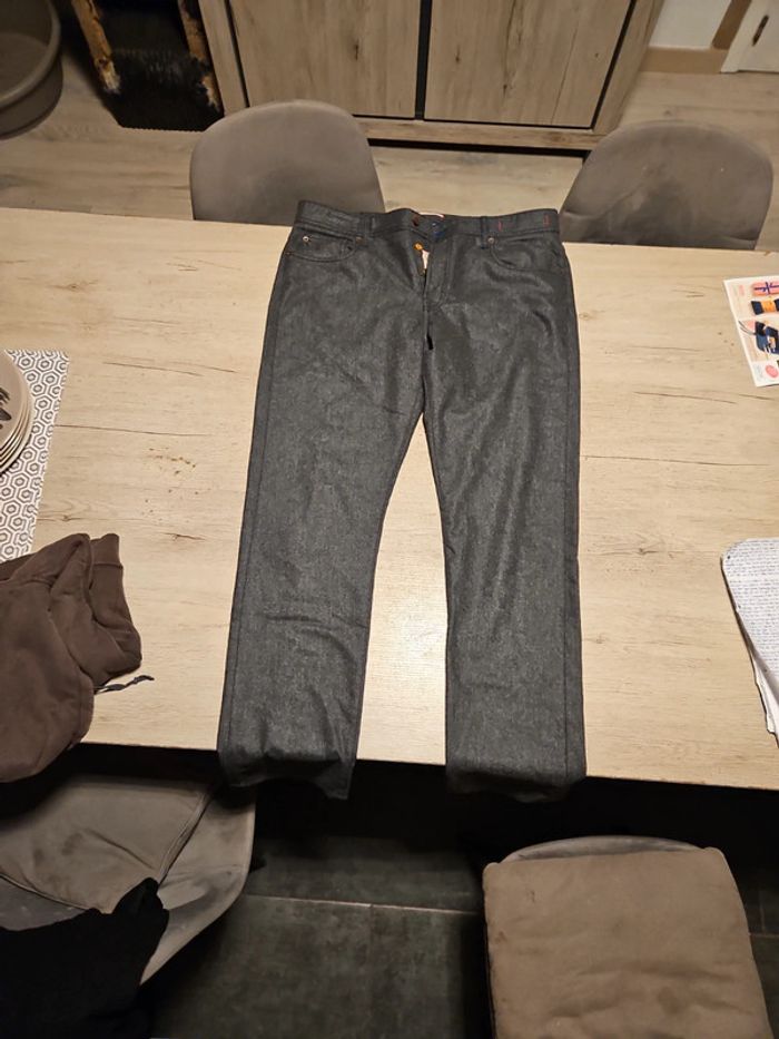 Pantalon homme classique gris foncé fait par 1 tailleur belge. Il n a été mis qu une fois car offert à mon mari mais trop grand. Il est donc nickel. Acheté 220€ l année passée. 50 cm à la taille et longueur de 107 cm. Il est assez epais. Poches avant et arrière. Passants pour ceinture. #deborahtock_homme
