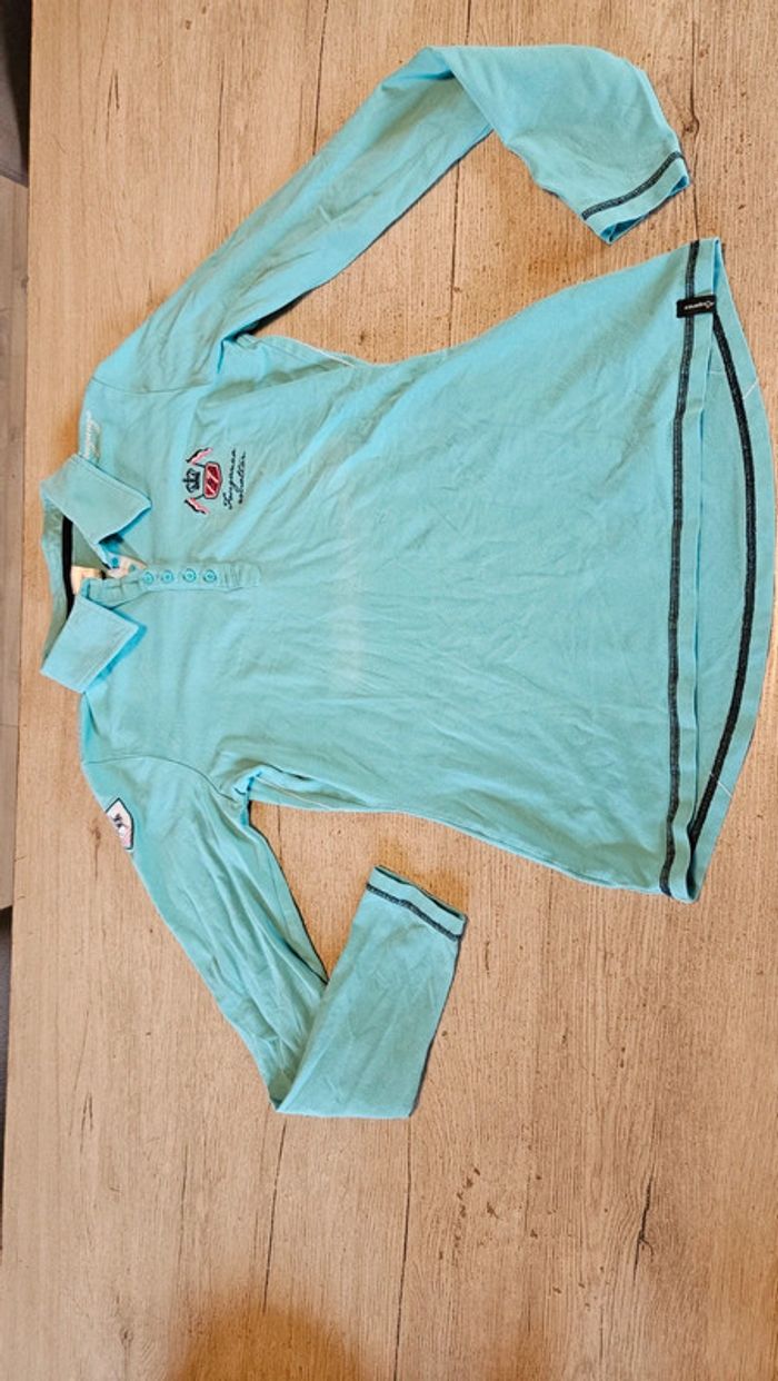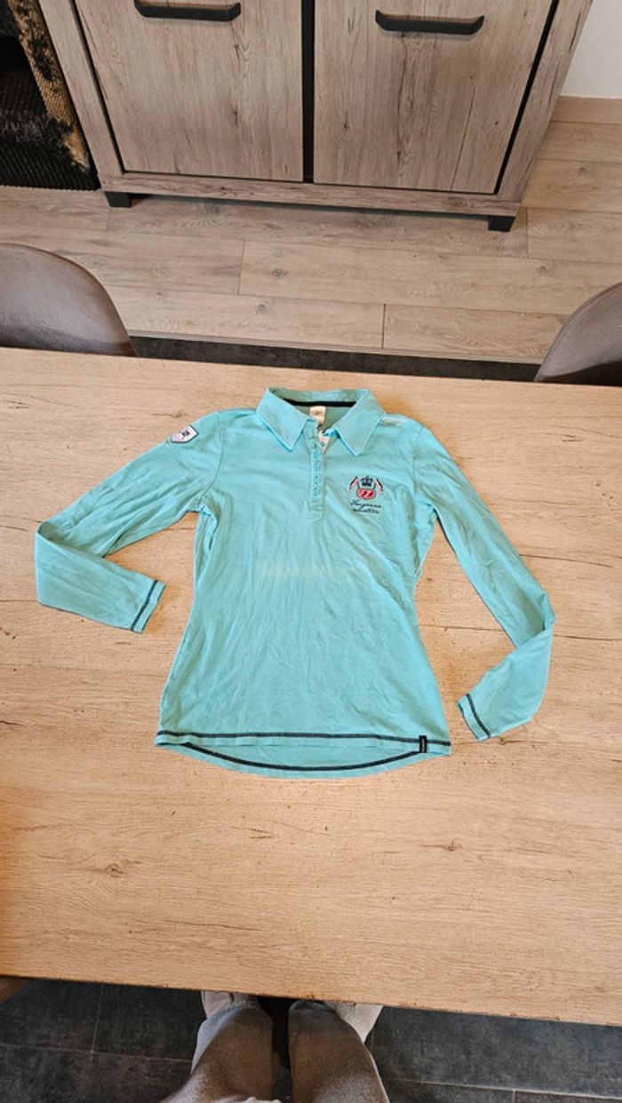 Polo d équitation turquoise à manches longues, Fouganza, taille 36/38 - photo numéro 1