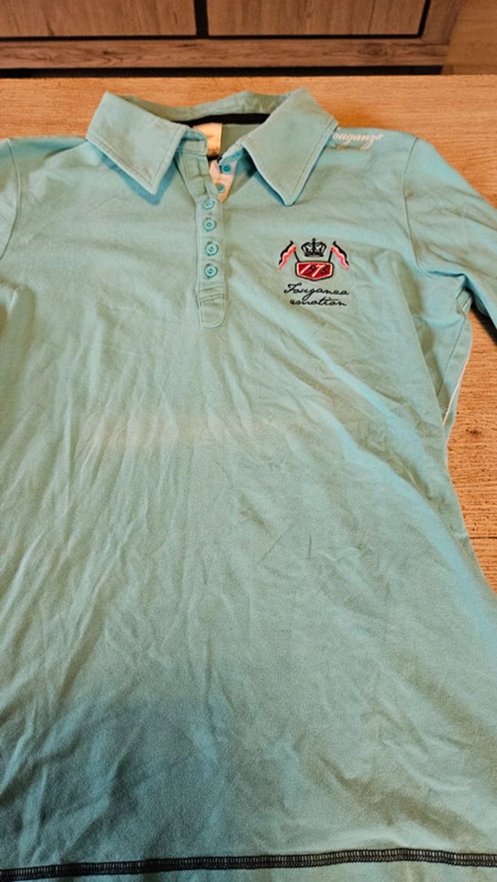 Polo d équitation turquoise à manches longues, Fouganza, taille 36/38 - photo numéro 3