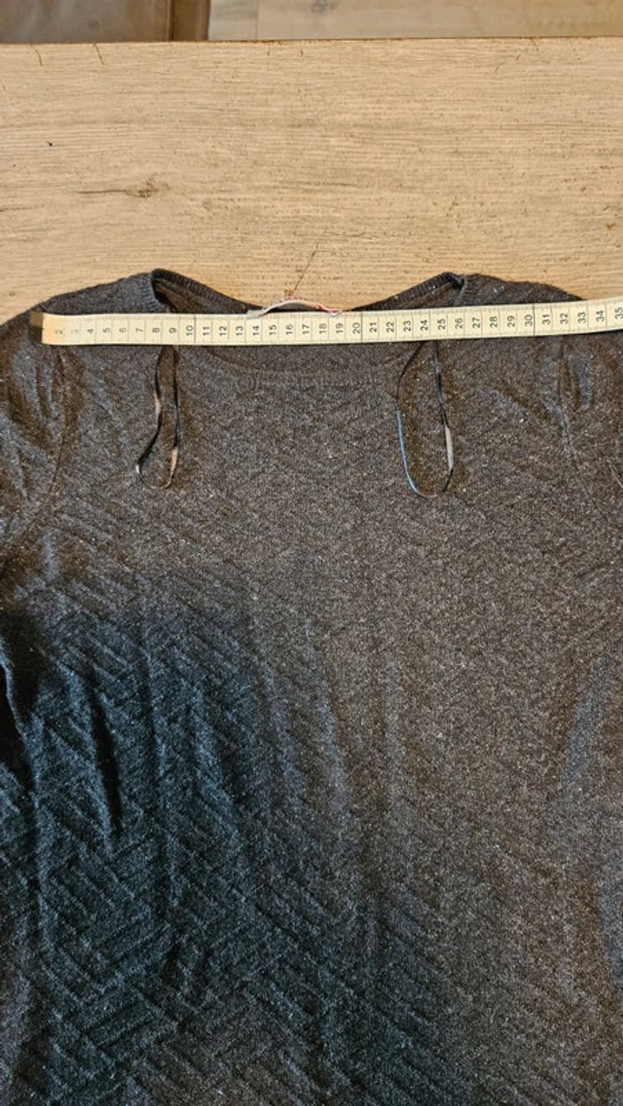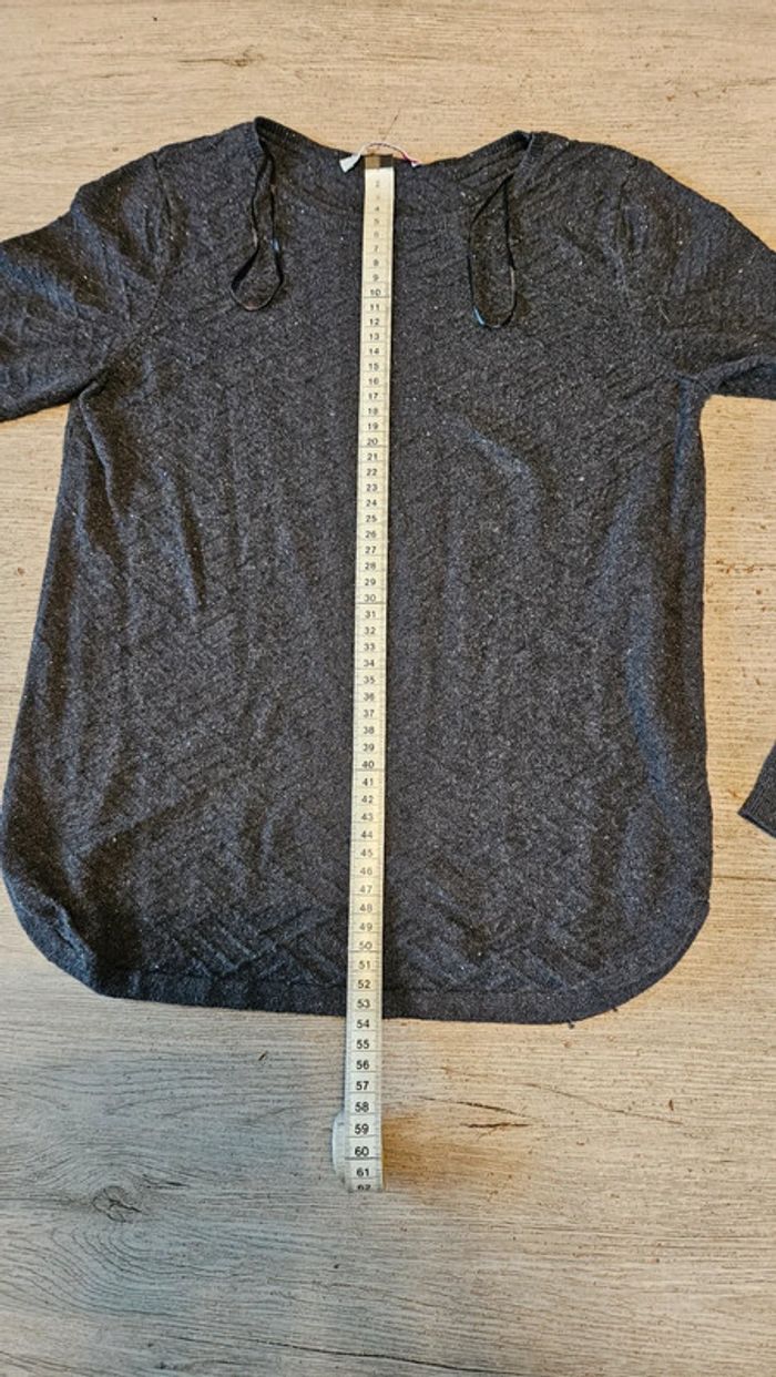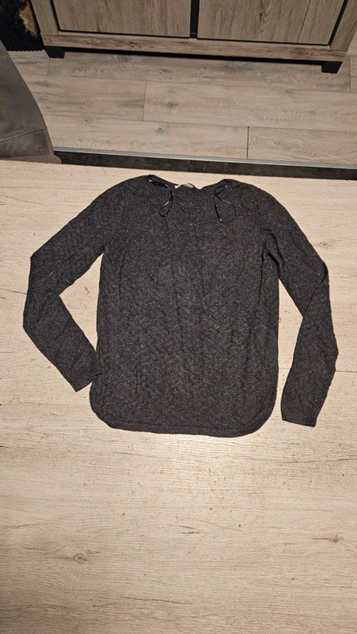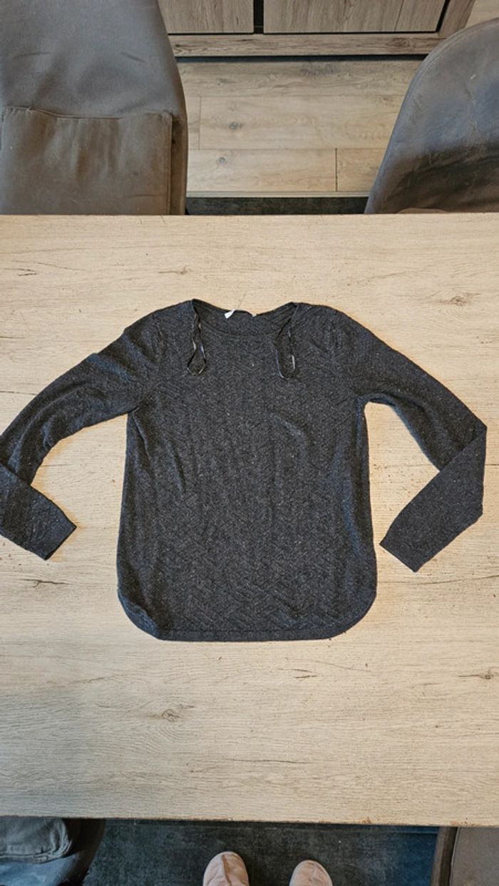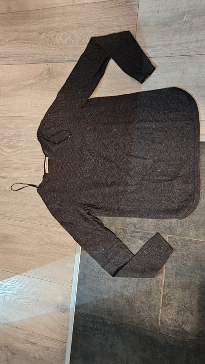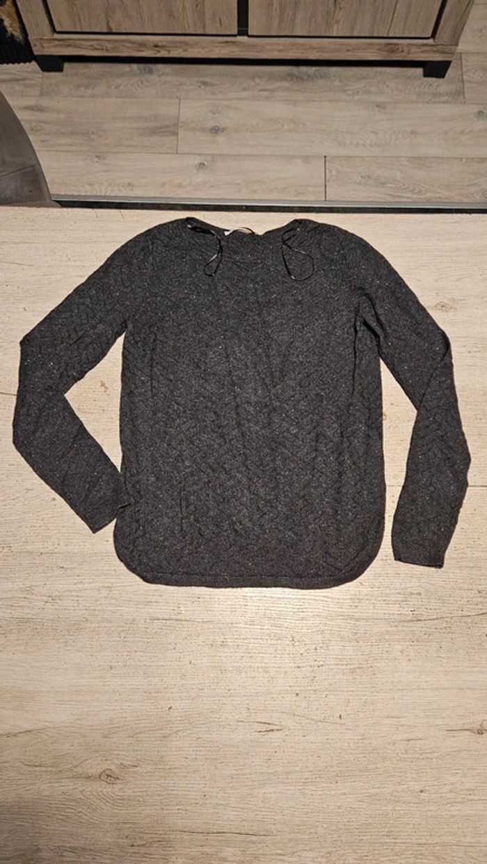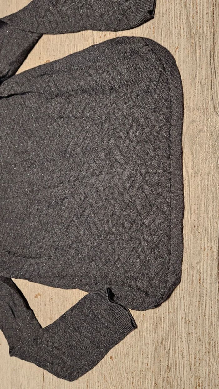 Joli pull avec motif très léger avec quelques fils brillants. Col rond. Mesures 39 cm d aisselle à aisselle, épaule 33 cm, longueur de 53 cm et largueur de 40 cm. L étiquette de composition a été enlevée car grattait. Il n a été mis qu une ou deux fois dlnc nickel. Convient pour du XS ou du 14/16ans #deborahtock_femmeXS #deborahtock_14ans #deborahtock_16ans