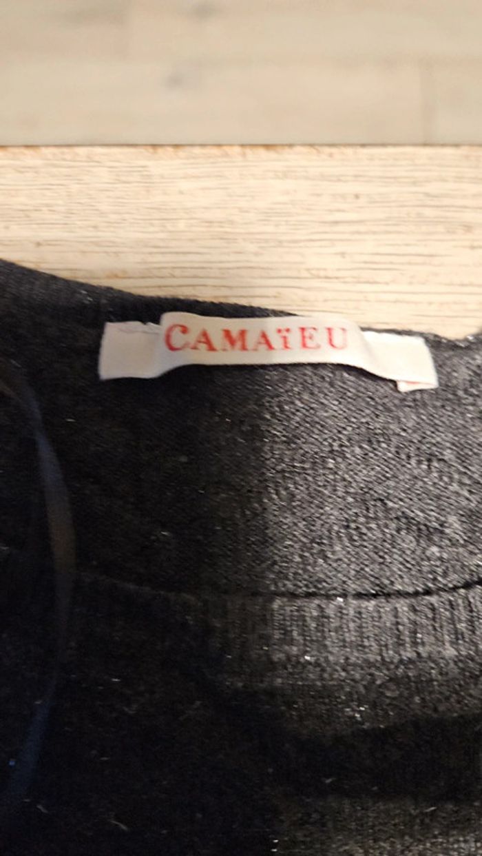 Pull gris léger à manches longues, motifs et brillants, Camaïeu, XS, nickel - photo numéro 13