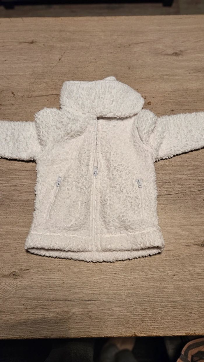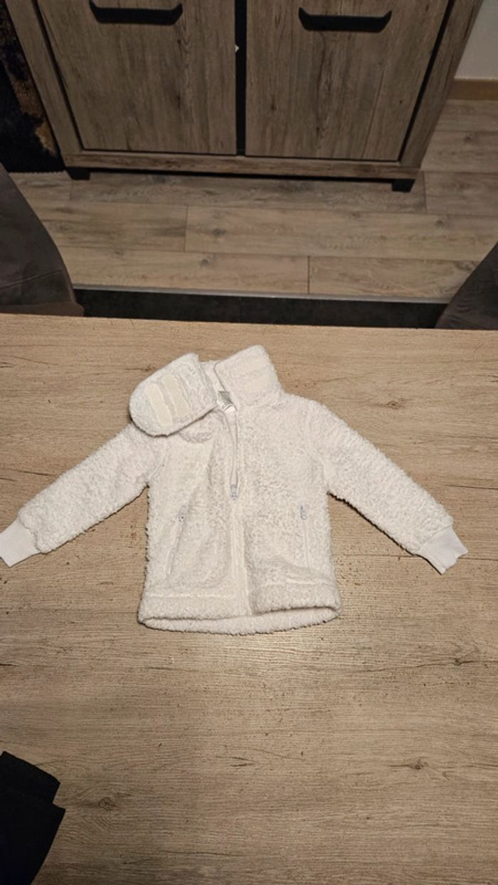 Gilet polaire qui se ferme par 1 tirette. Poches qui se ferment par 1 tirette. Col montant qui se ferme avec 3 sratches. Mis mais peu. Bien chaud Convient bien pour du 3 à 4 ans #deborahtock_4ans