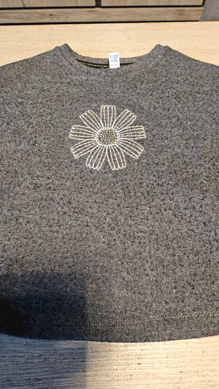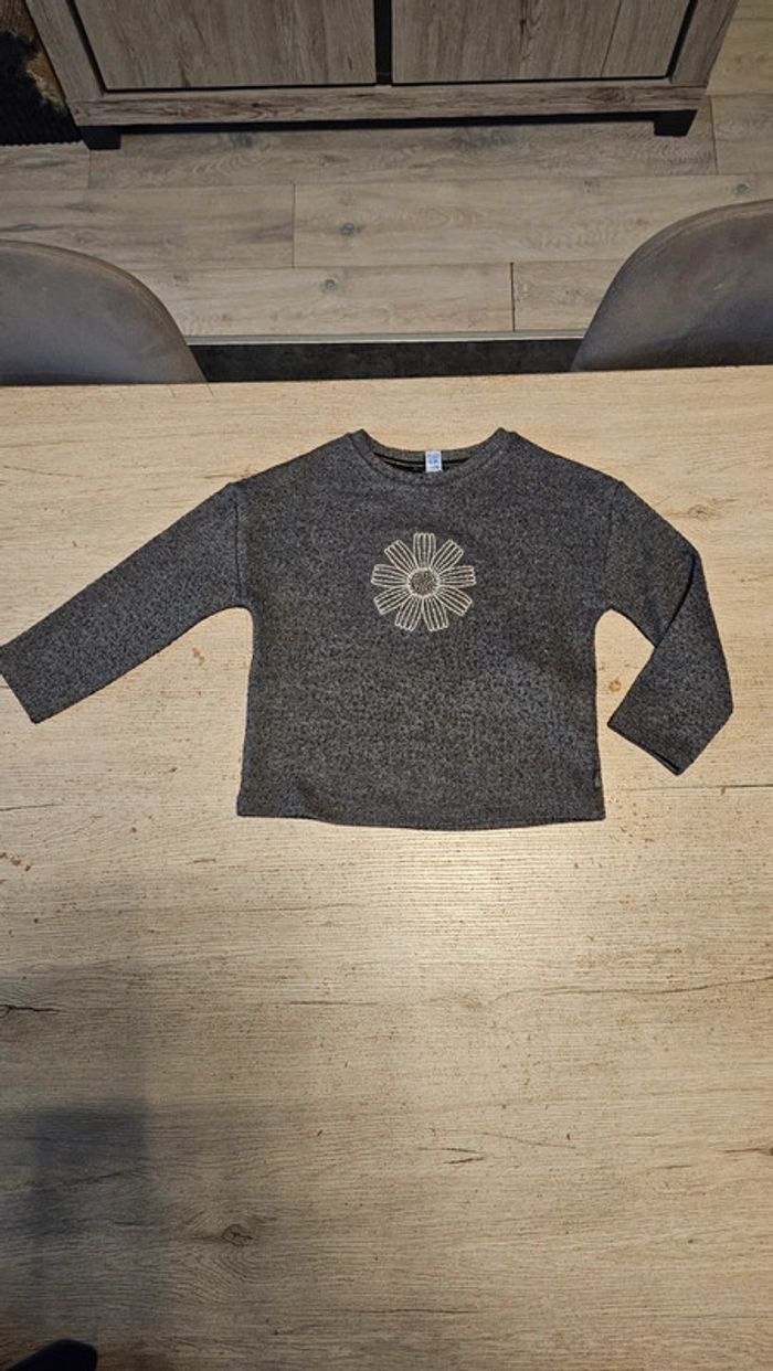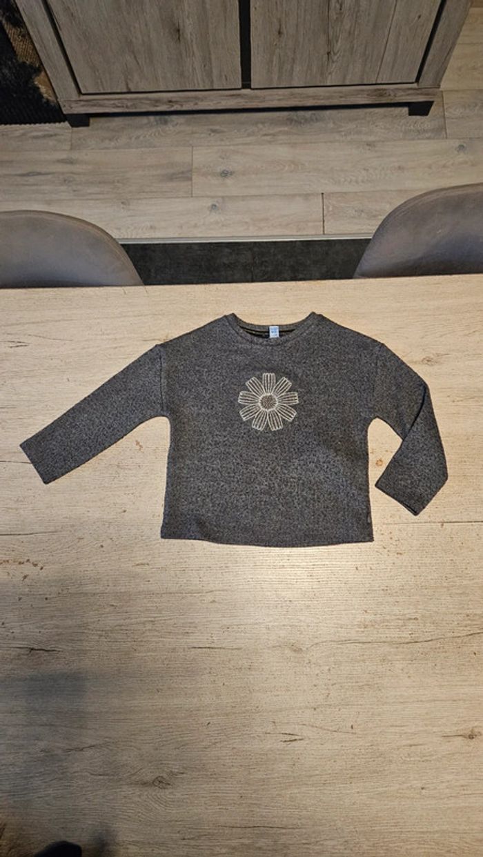 Joli pull pour fille à col rond. Mis mais trés peu. Convient bien pour du 5 ans. La fleur est brodée au milieu avec quelques petits brillants #deborahtock_5ans