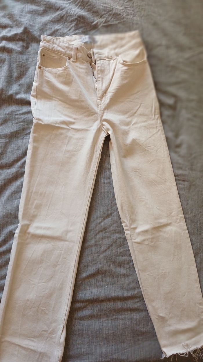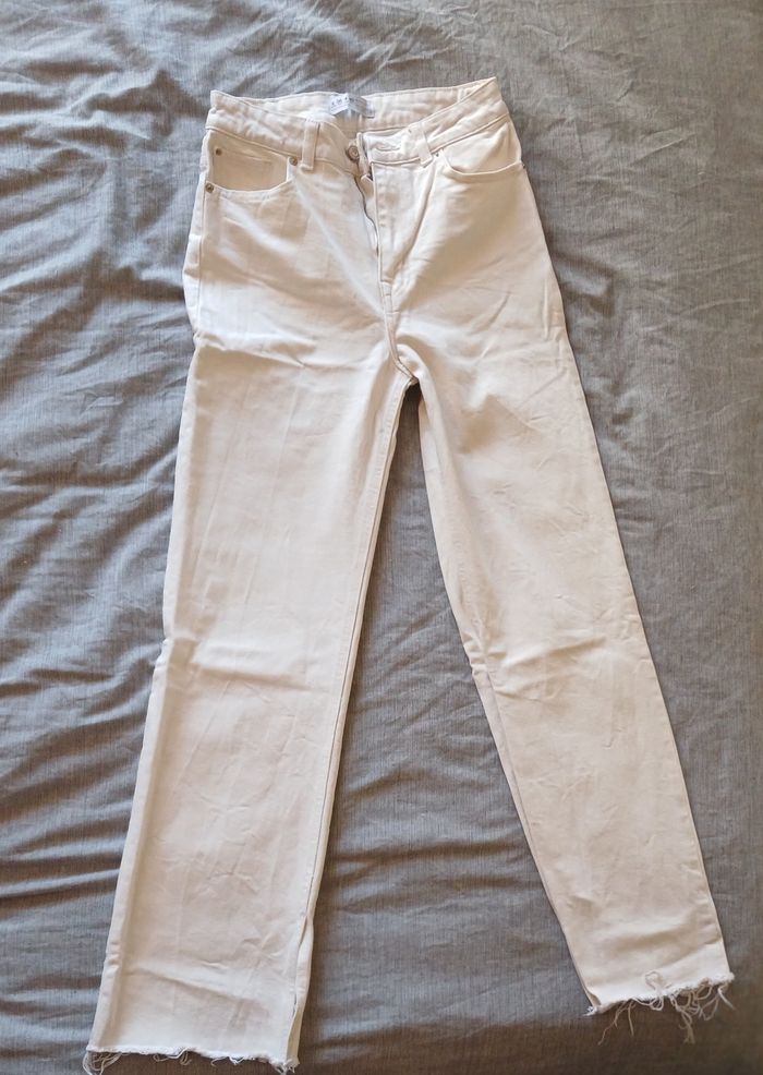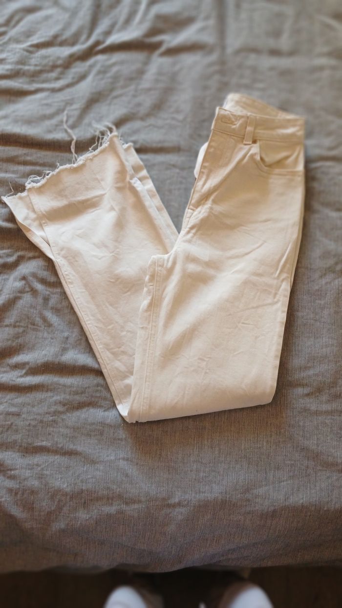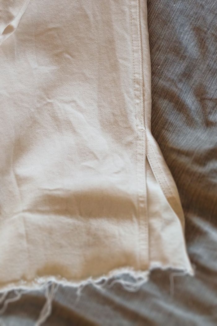 Pantalon large couleur crème comporte des petites sur le bas du pantalon mais c est très léger voir la photo