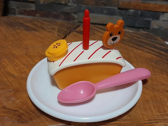 Gâteau 1 part. Vendu comme sur les photos. Accessoires pour dînette bon état. Vendus comme sur les photos. Consultez mes autres annonces, création de lot possible sur simple demande .🙂