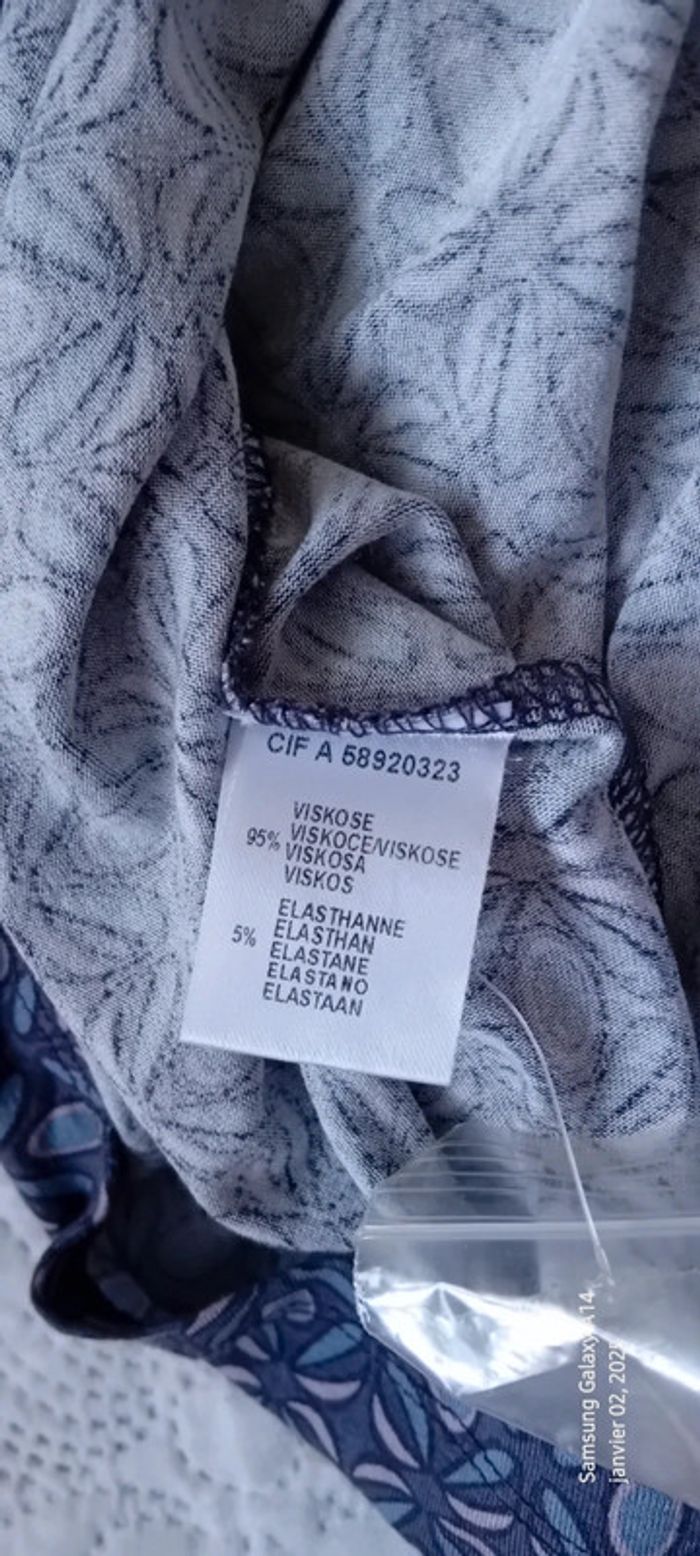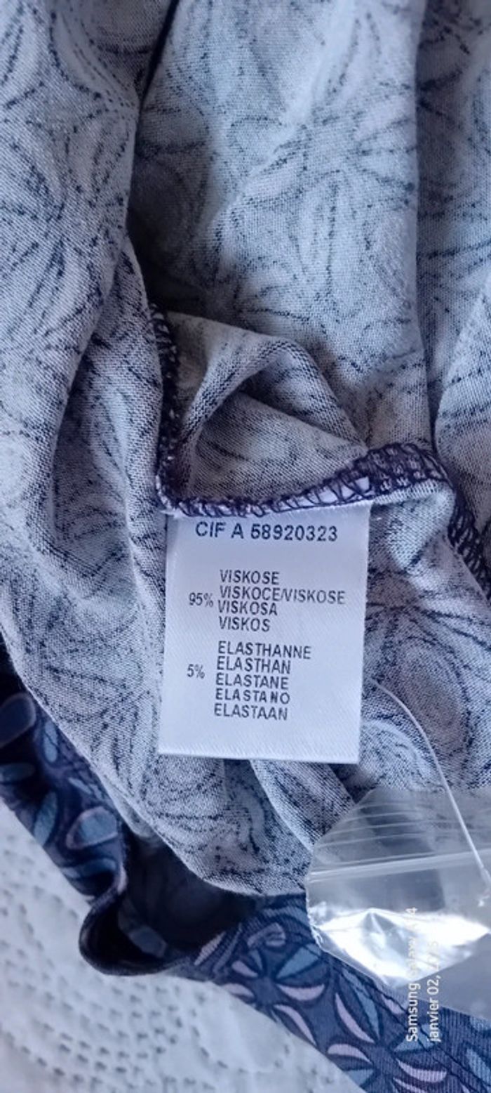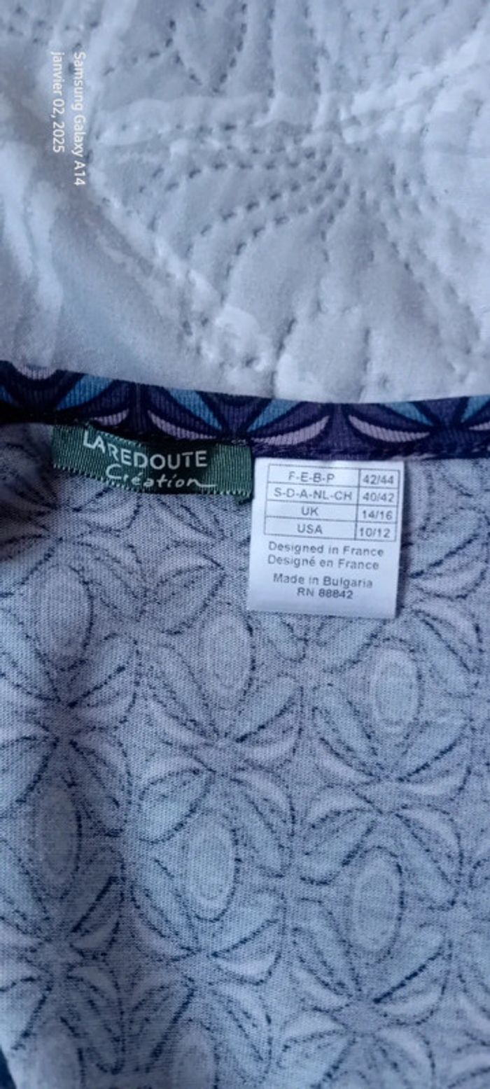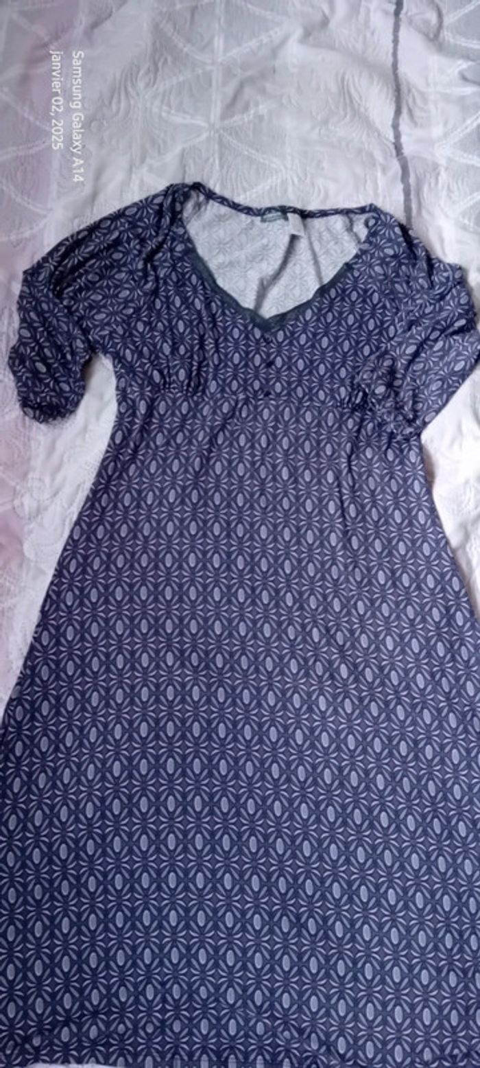 Robe en viscose et elastanne matière fluide et légère extensible manches 3/4 avec élastique décolleté en V avec faux boutonnage dentelle au décolleté motif floral taille haute bas évasé volanté longueur 101 cm largeur aisselles à aisselles 46 cm largeur épaules 45 cm longueur manches 25 cm jamais portée état neuf bouton de rechange fourni #midole #midolefemme #midolefemme42 #robefemme42 #femme42 #robemotiffloral #robemanches3/4 #robeviscose #laredoute