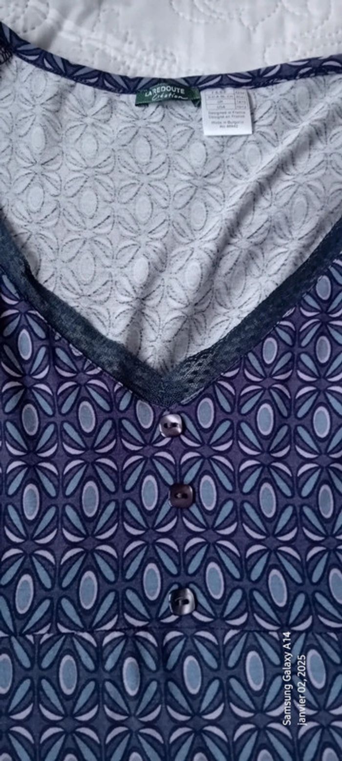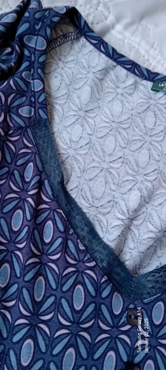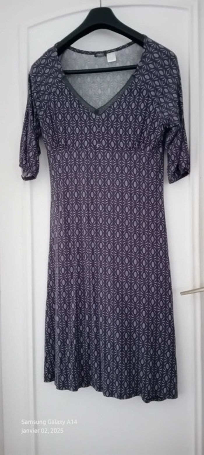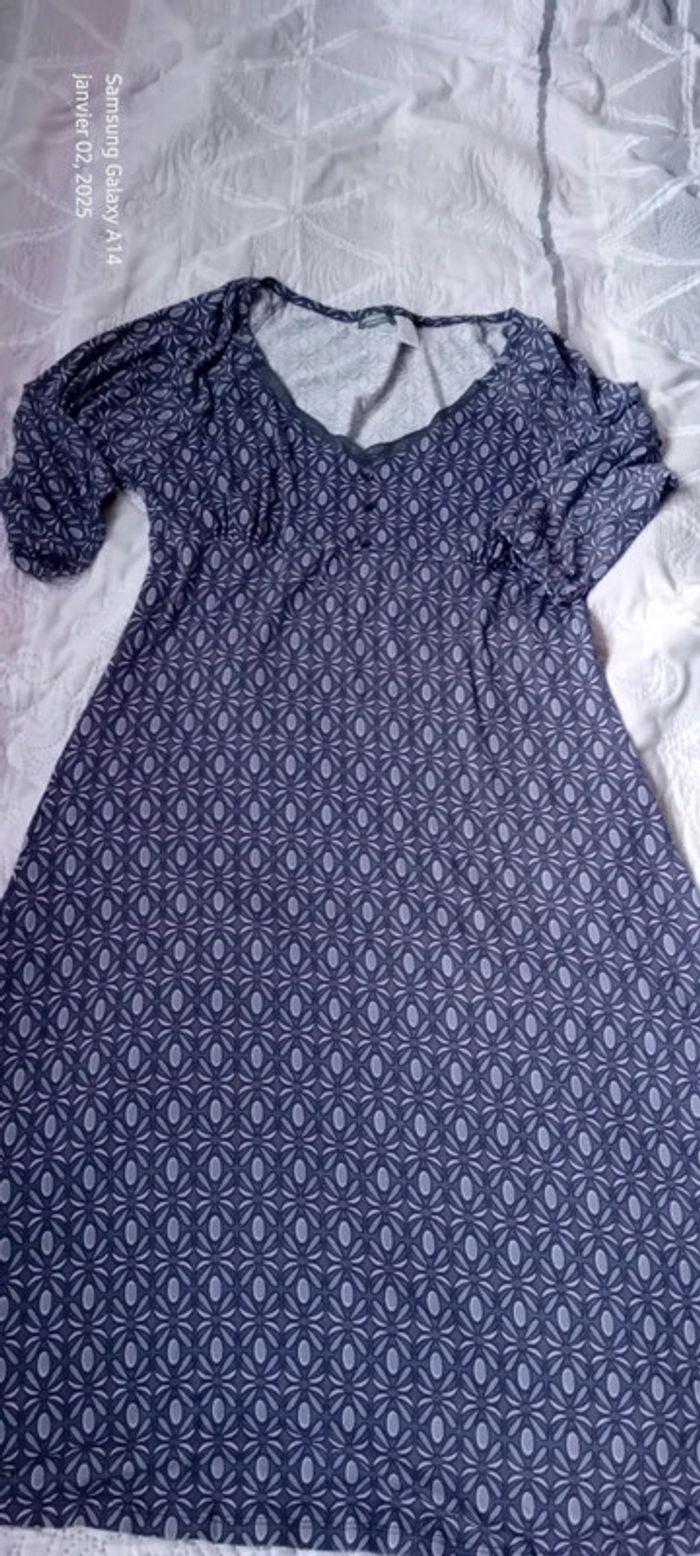 Robe en viscose et elastanne matière fluide et légère extensible manches 3/4 avec élastique décolleté en V avec faux boutonnage dentelle au décolleté motif floral taille haute bas évasé volanté longueur 101 cm largeur aisselles à aisselles 46 cm largeur épaules 45 cm longueur manches 25 cm jamais portée état neuf bouton de rechange fourni #midole #midolefemme #midolefemme42 #robefemme42 #femme42 #robemotiffloral #robemanches3/4 #robeviscose #laredoute