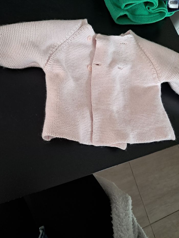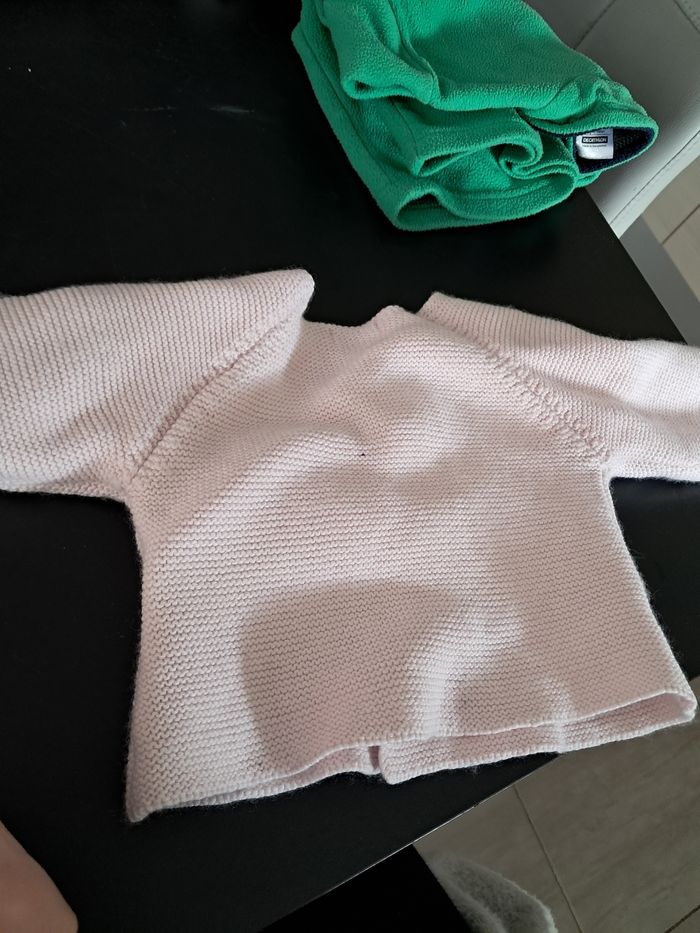 Gilet bout'chou Taille 9 mois Etiquette D'occasion Pas de signes d'usure Epais et chaud 84% coton 16% laine Couleur rose pale Superbe