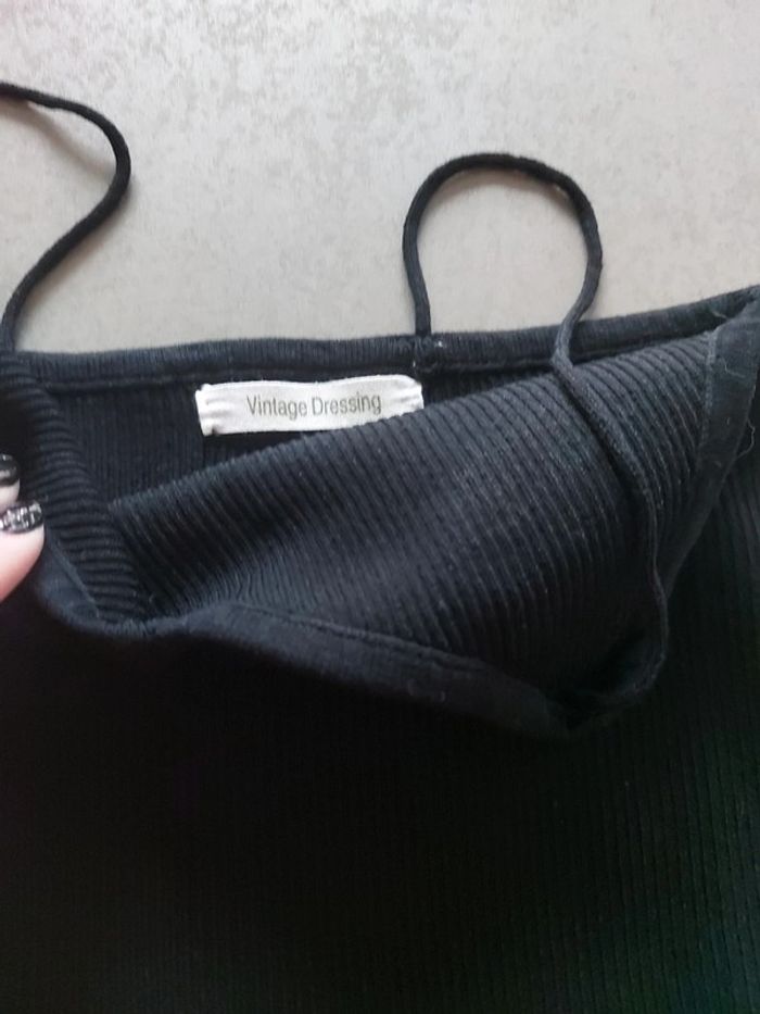 Top en maille tubulaire, bretelles spaghetti. L´étiquette est coupée mais correspond à du XS, soit 34.