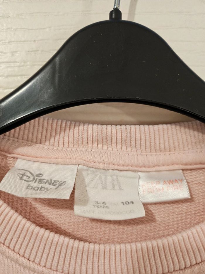 Pull Disney Zara Très bon état sauf une tâche voir photo Manches bouffantes Rose pâle Taille 3-4 ans soit 104 cm