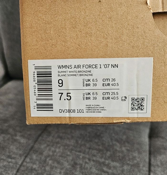 Nike air force 1 Neuf Taille 40,5 Blanc sommet/bronzine Authentique