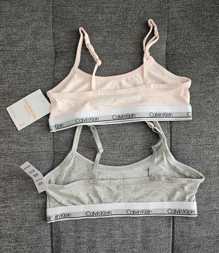 Lot de 2 brassières Calvin Klein Neuf Taille 7-8 ans 1 gris 1 saumon Authentique